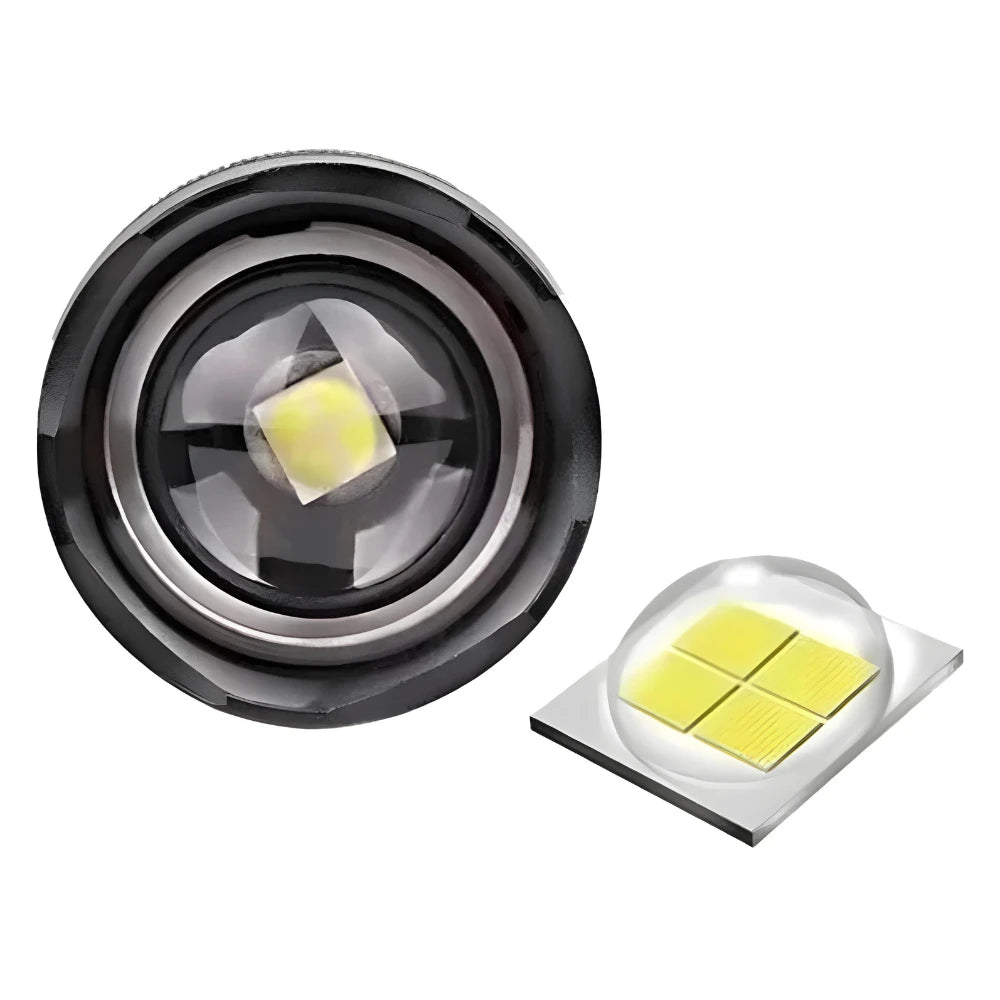 Esta é a lanterna mais potente que você vai encontrar no mercado e além disso super resistente, usinada em liga de Alumínio Anodizado, indeformável, impermeável e anticorrosiva.