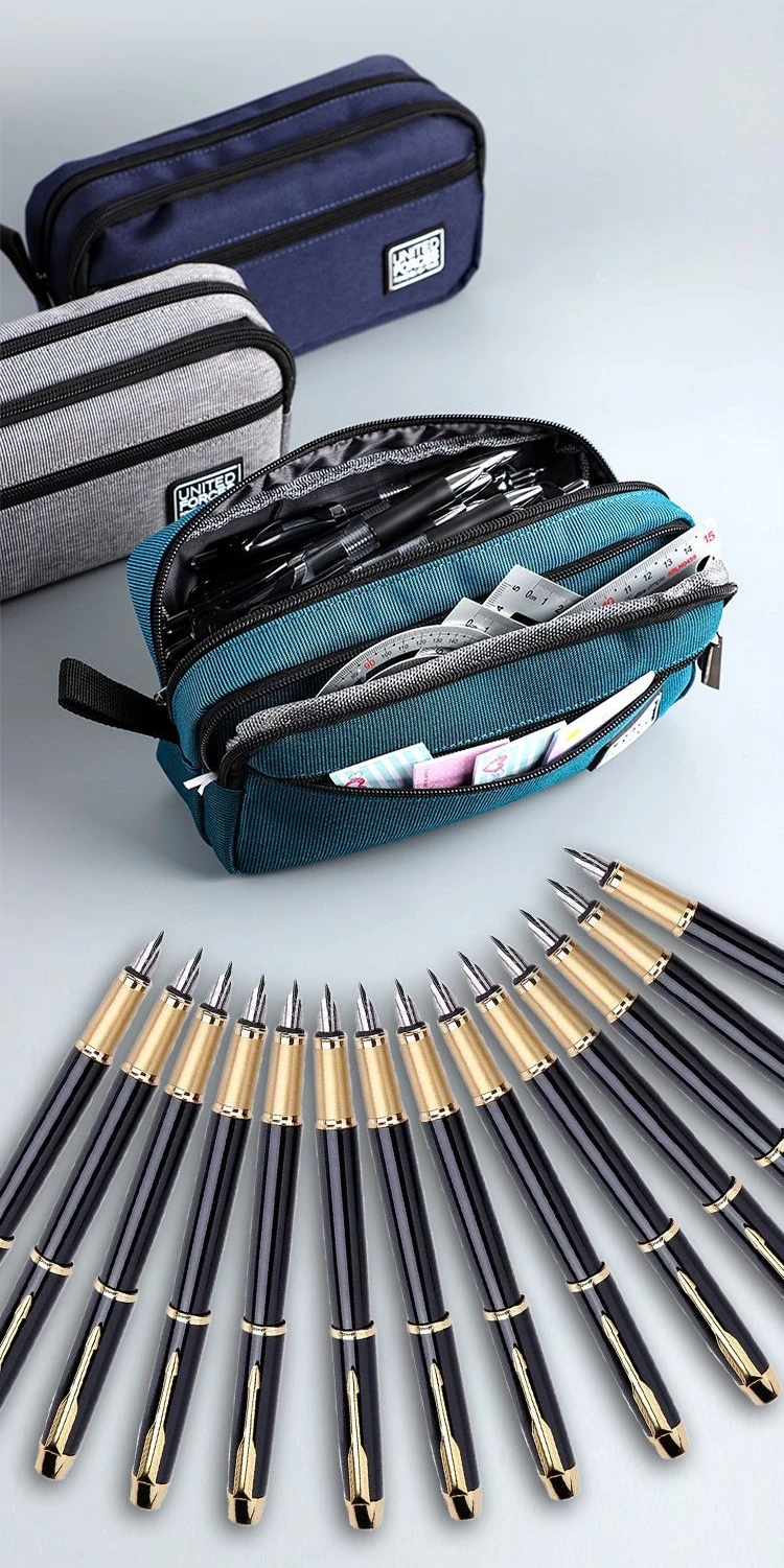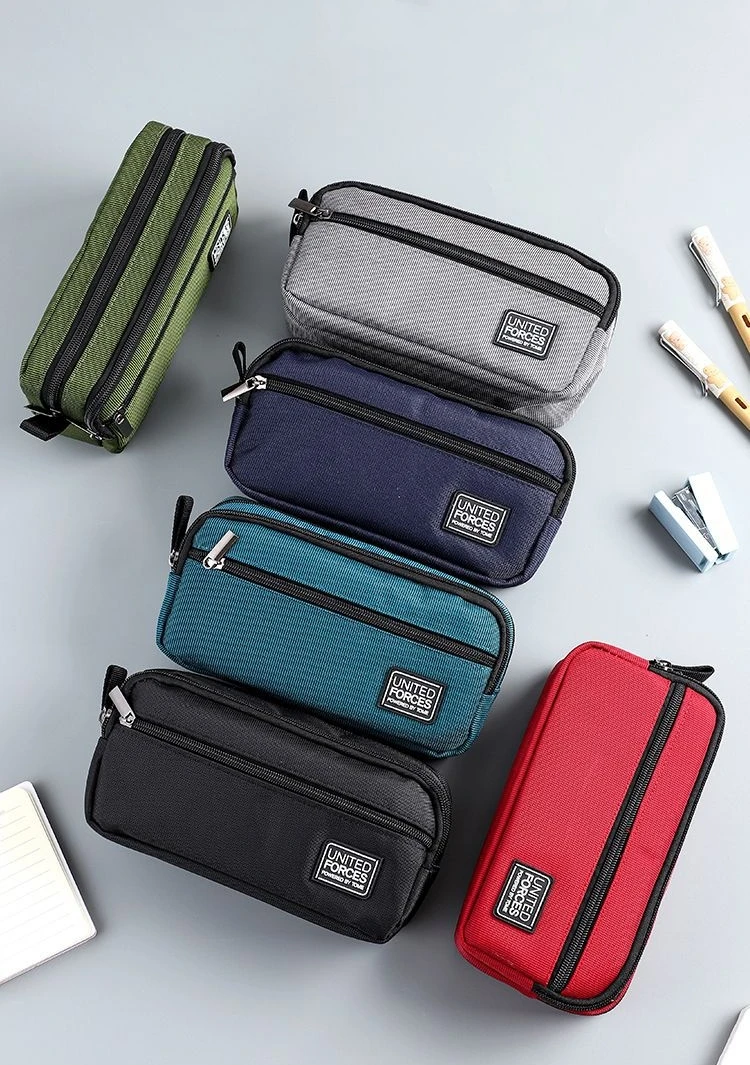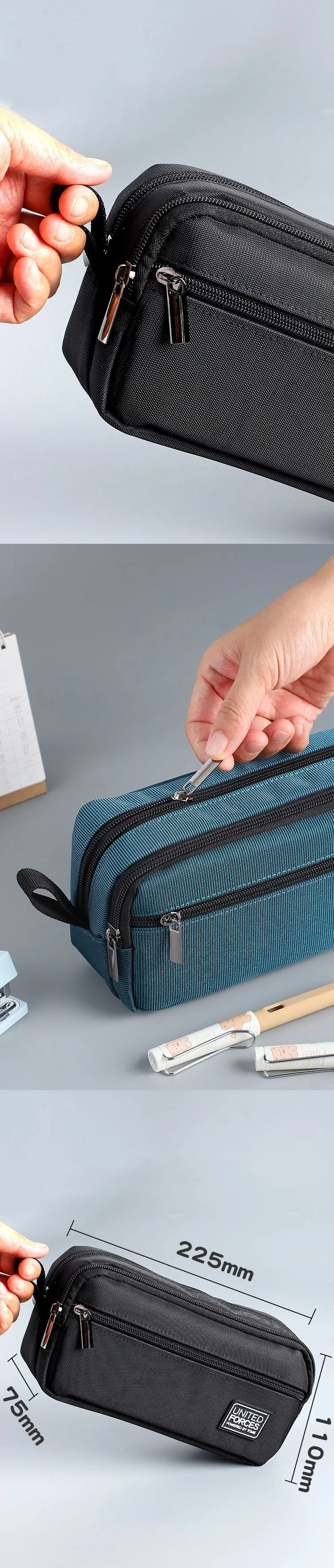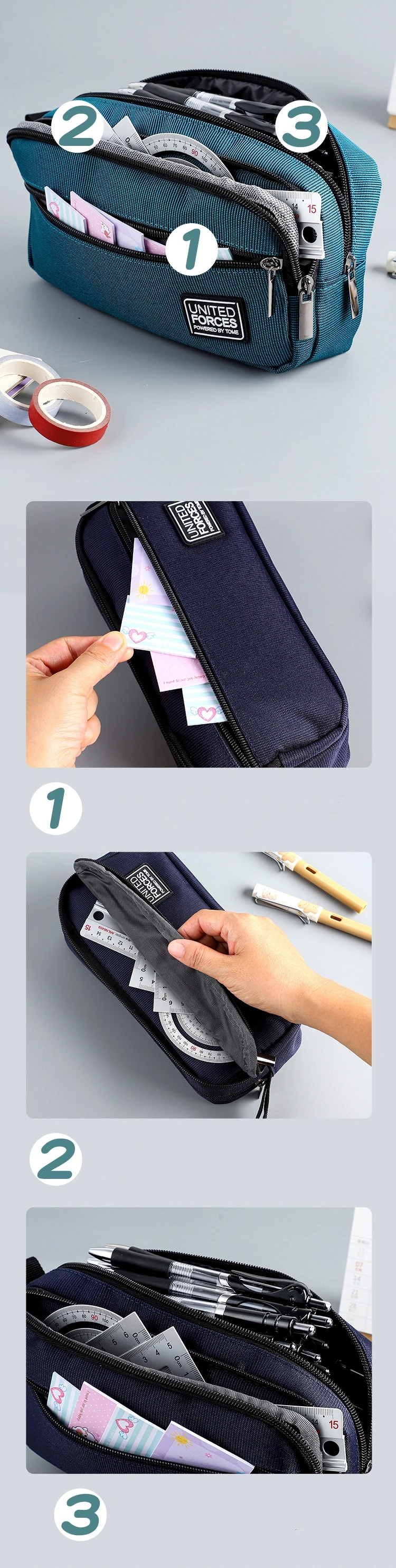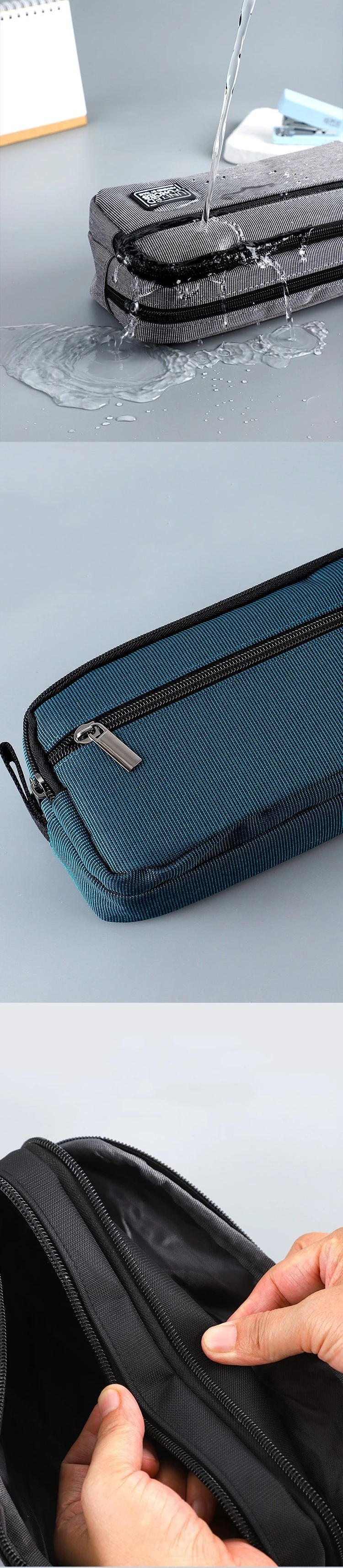 portable three-layer large capacity pencil bag boy canvas pen case school office supplies storage bag waterproof stationery bag