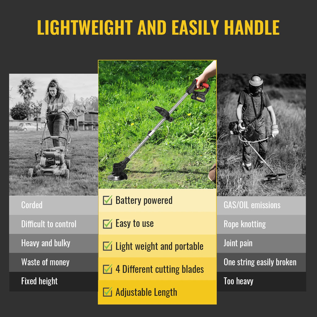 Conentool 21V Cordless Electric Lawn Mower 2*Batteries Grass Trimmer Adjustable Length Lightweight Household Garden Yard Cutting