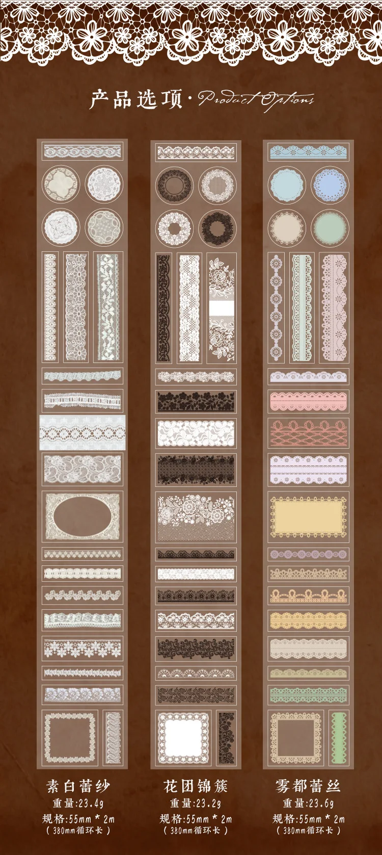 Flower Island Lace Series Masking Washi Tape Retro Border Decorative Adhesive Material Sticker Diy Label Scrapbooking