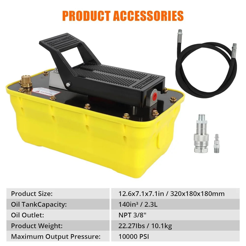 Air Hydraulic Pump,10,000 PSI 1/2 Gal Reservoir, NPT 3/8" Oil Outlet, 6.6 ft Pipe, Foot Actuated Hydraulic Pump Air Treadle