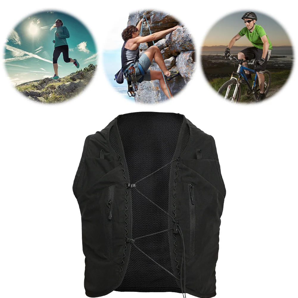 Hydration Pack Backpack Breathable Functional Running Vest Large Capacity Sports Cycling Water Bag for Climbing Hiking Traveling Specification: Origin: Mainland China Main Material: Polyester Color: Black Size: S, M, L, XL, XXL Package Size: About 36cm (14.17in)*24cm (9.45in)*5cm (1.97in) Net Weight: About 230g/240g/250g/260g/270g Recommended size: S (suitable for chest circumference of about 78-86cm/30.71-33.86 inches) M (suitable for chest circumference of about 87-92cm/34.25-36.22 inches) L (suitable for chest circumference of about 93-99cm/36.61-38.98 inches) XL (suitable for chest circumference of about 100-107cm/39.37-42.13 inches) XXL (suitable for chest circumference of about 108-120cm/42.52-47.24 inches)
