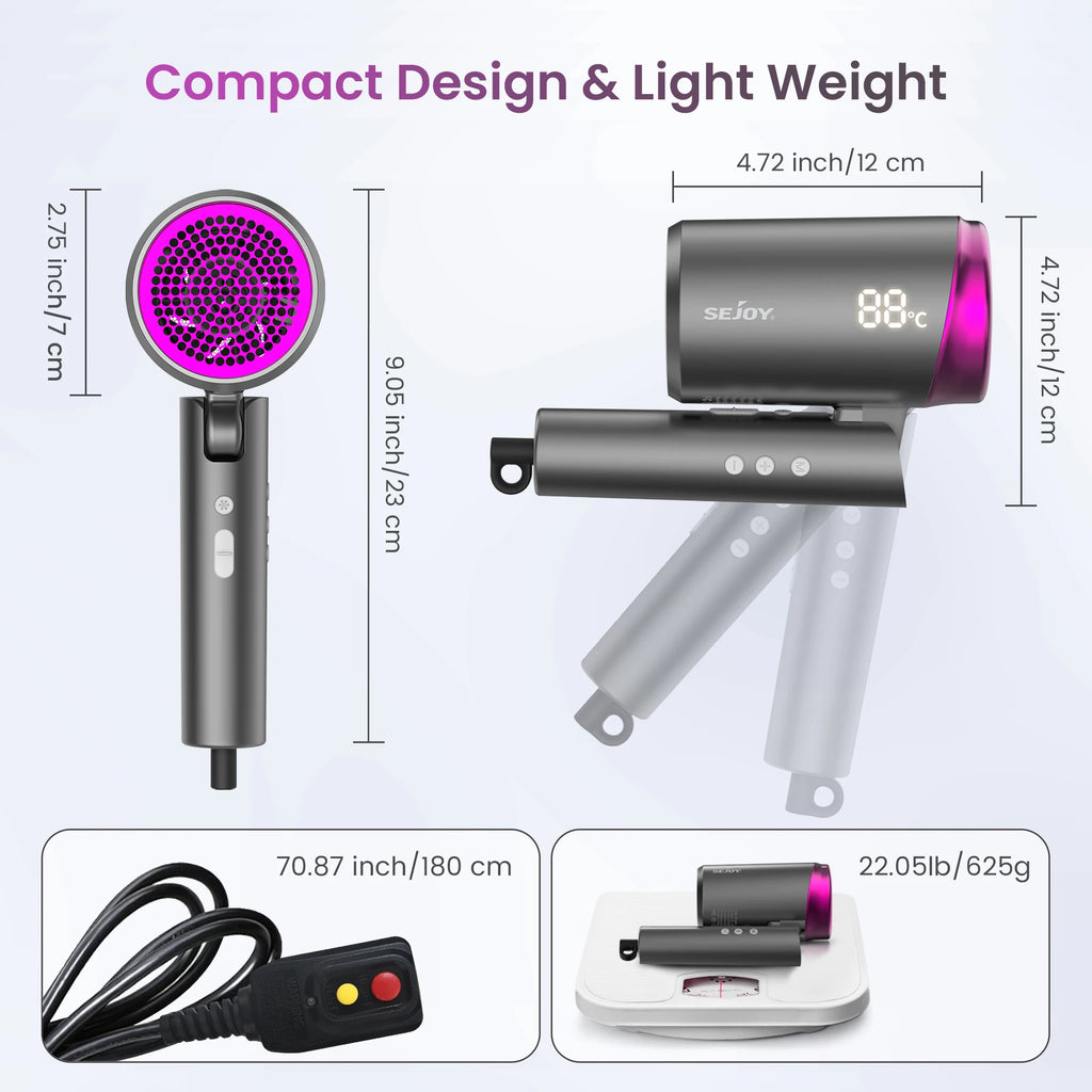 Sejoy Hair Dryer 110v 1800W, High-Speed Electric Turbine Airflow, Low Noise, Constant Temperature And Quick Drying for Home