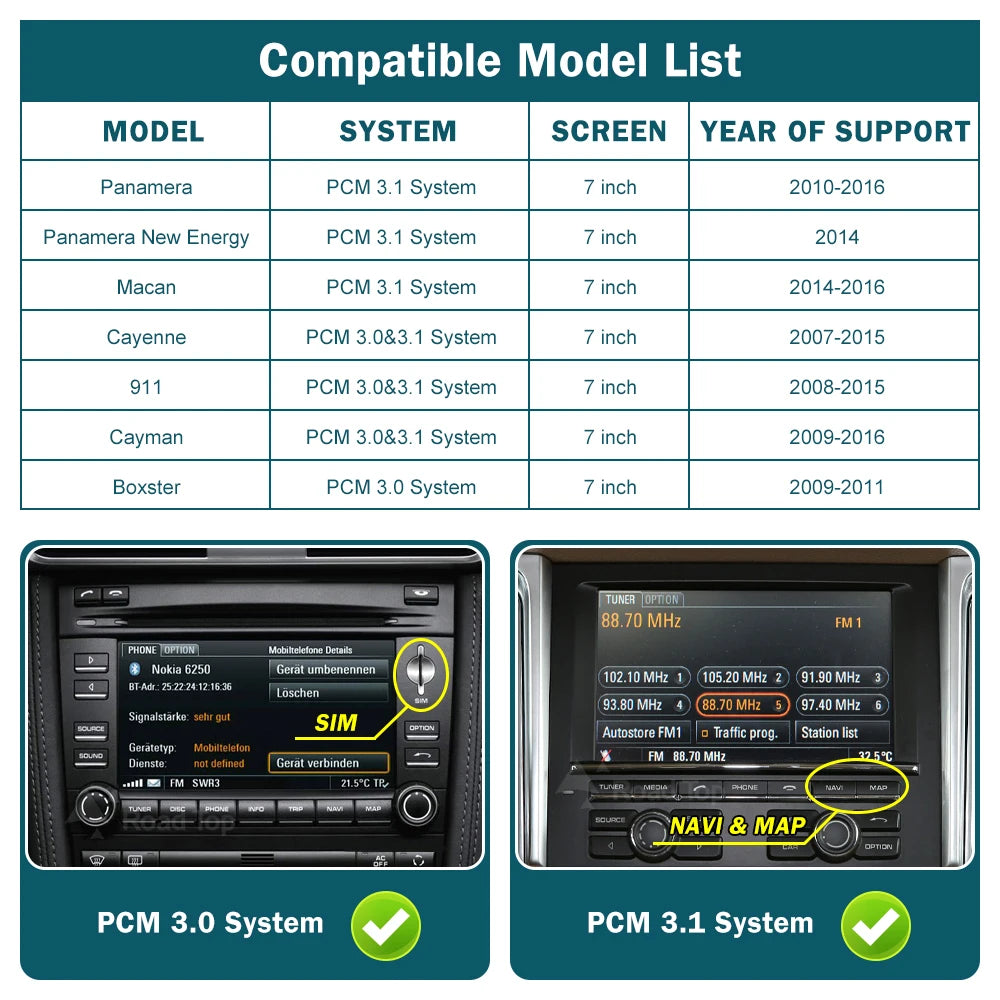 For Porsche 911/918 PCM 3.1 system ith 7 inch LCD screen