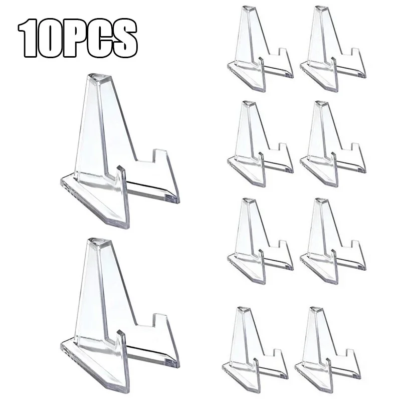 10PCS Acrylic Display Holder Transparent Triangle Commemorative Coin Small Photo fram Card Holder Rack Phone Stand Home Decor