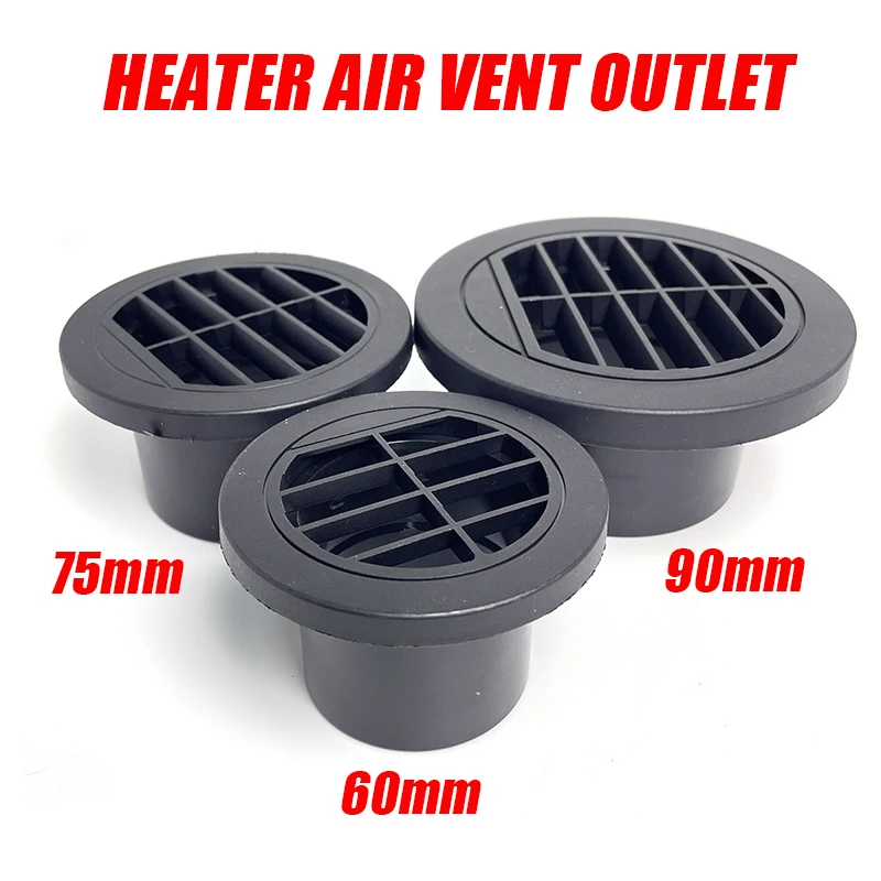 60mm / 75mm / 90mm Diesel Heater Duct Ducting Air Vent Outlet Flat Round Rotatable Connector Black For Car Truck VAN Camper