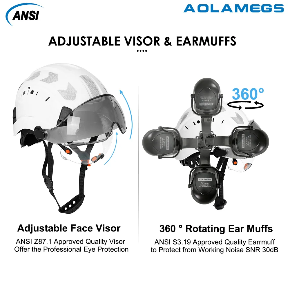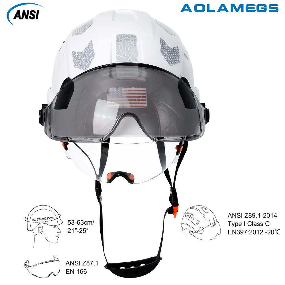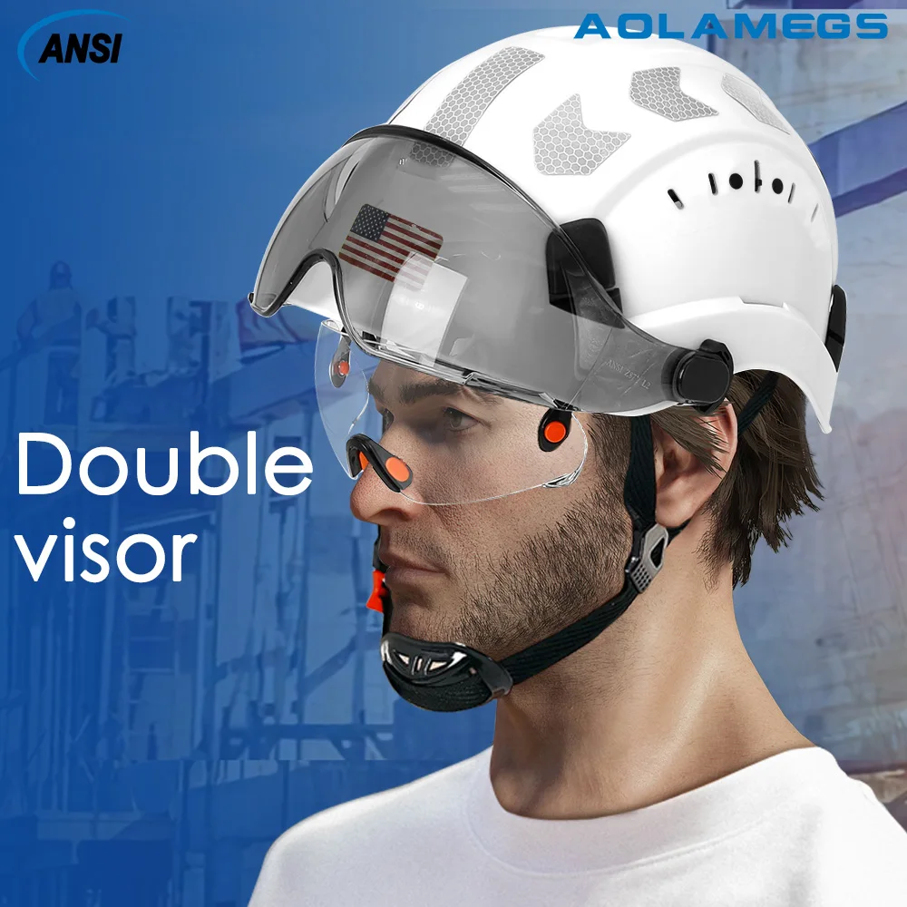 Construction Safety Helmet with Visor Built In Goggles Reflective Stickers ABS Hard Hat ANSI Industrial Work CE Engineer Cap