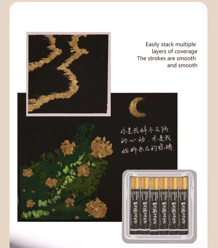 DELGREEN Pearlescent Oil Painting Stick Heavy Color Oil Painting Pastel Paint Graffiti Crayon Artist Students Art Supplies 6pcs