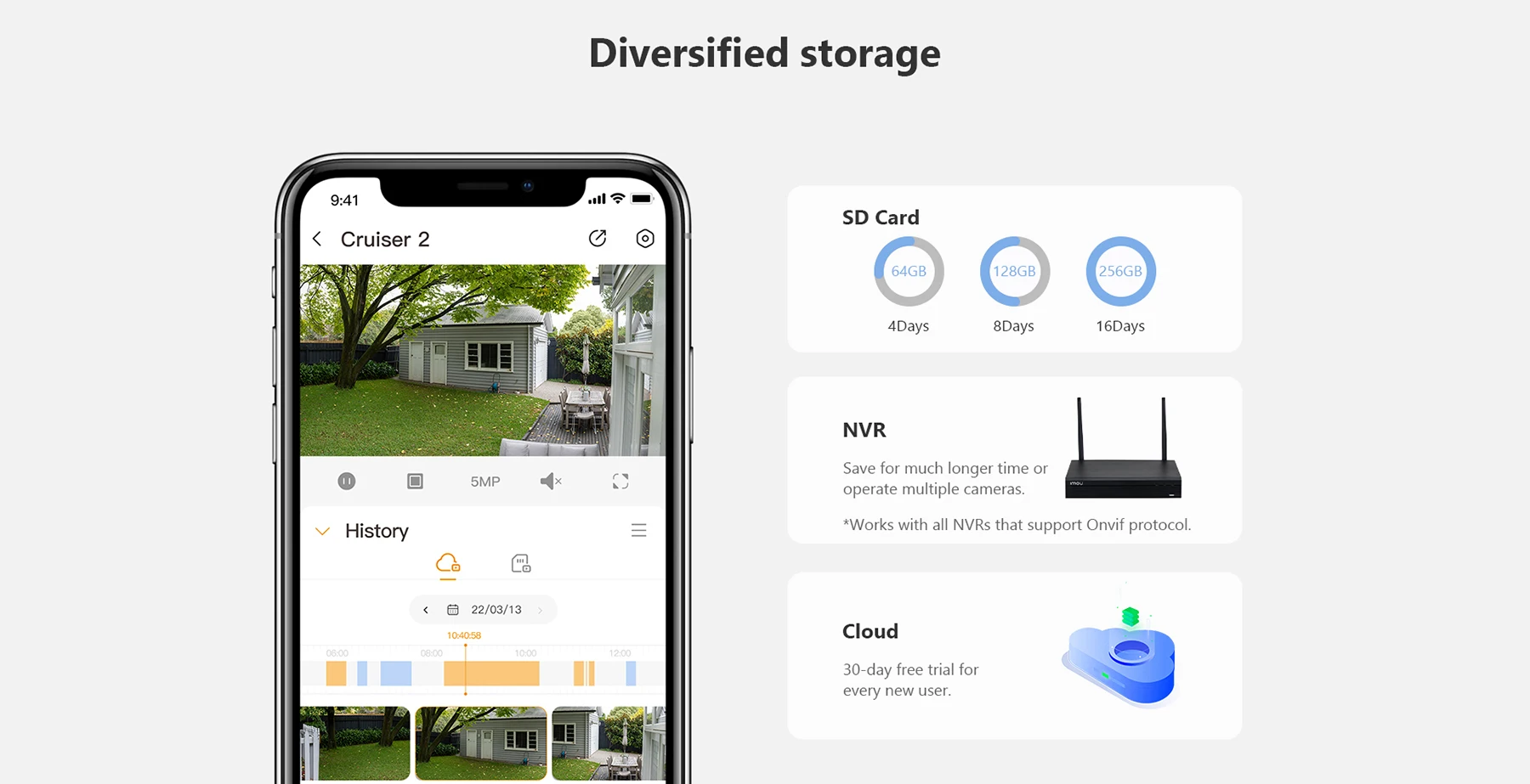 Diversified Storage: Supports NVR, Cloud Storage or Micro SD card (up to 256GB).