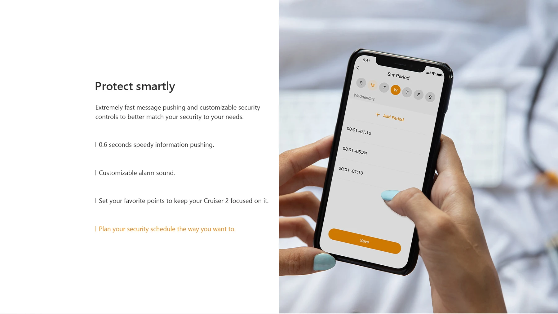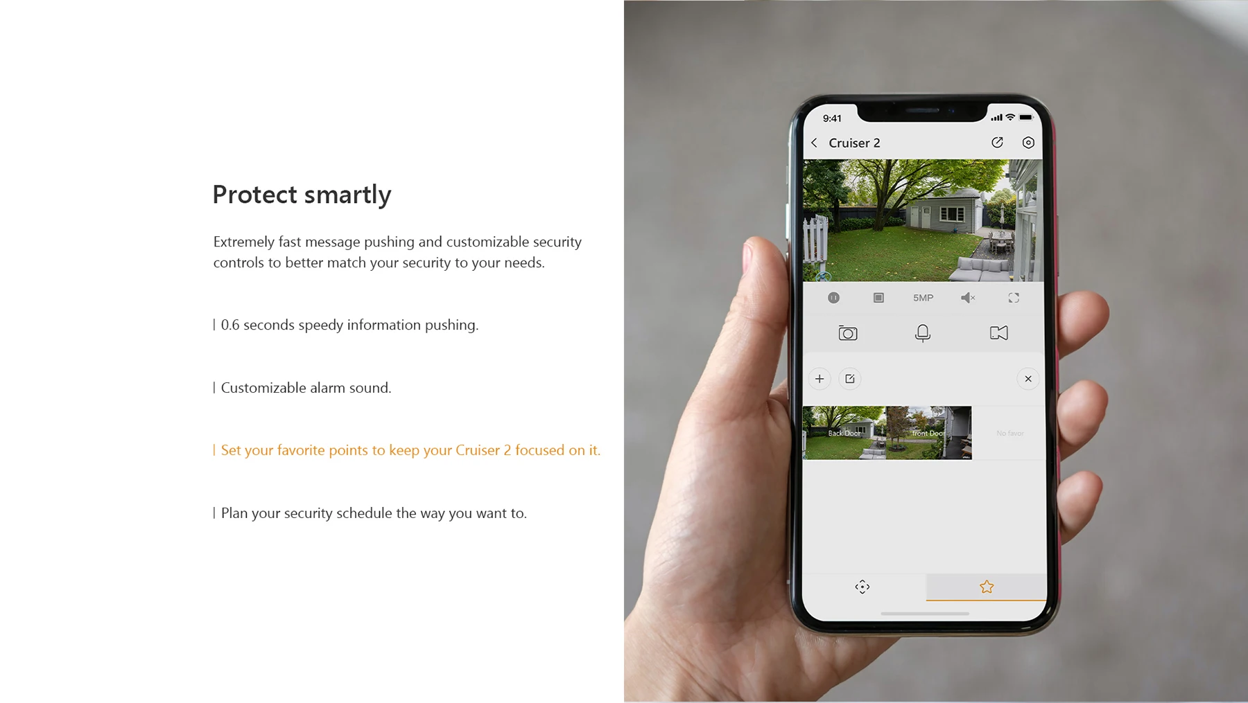 Cruiser 2 supports the latest Wi-Fi 6 standard with higher data transfer rates and better wall penetration, allowing your security range wider.