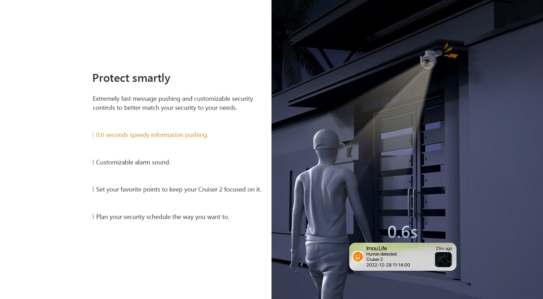 *With built-in spotlight and security siren, Cruiser 2 3MP/5MP actively keeps unwelcome visitors away from what you care about.