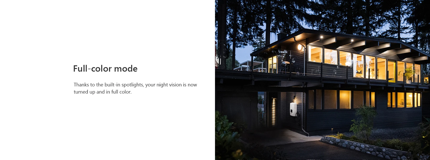 Thanks to the built-in spotlights, your night vision is now turned up and in full color.