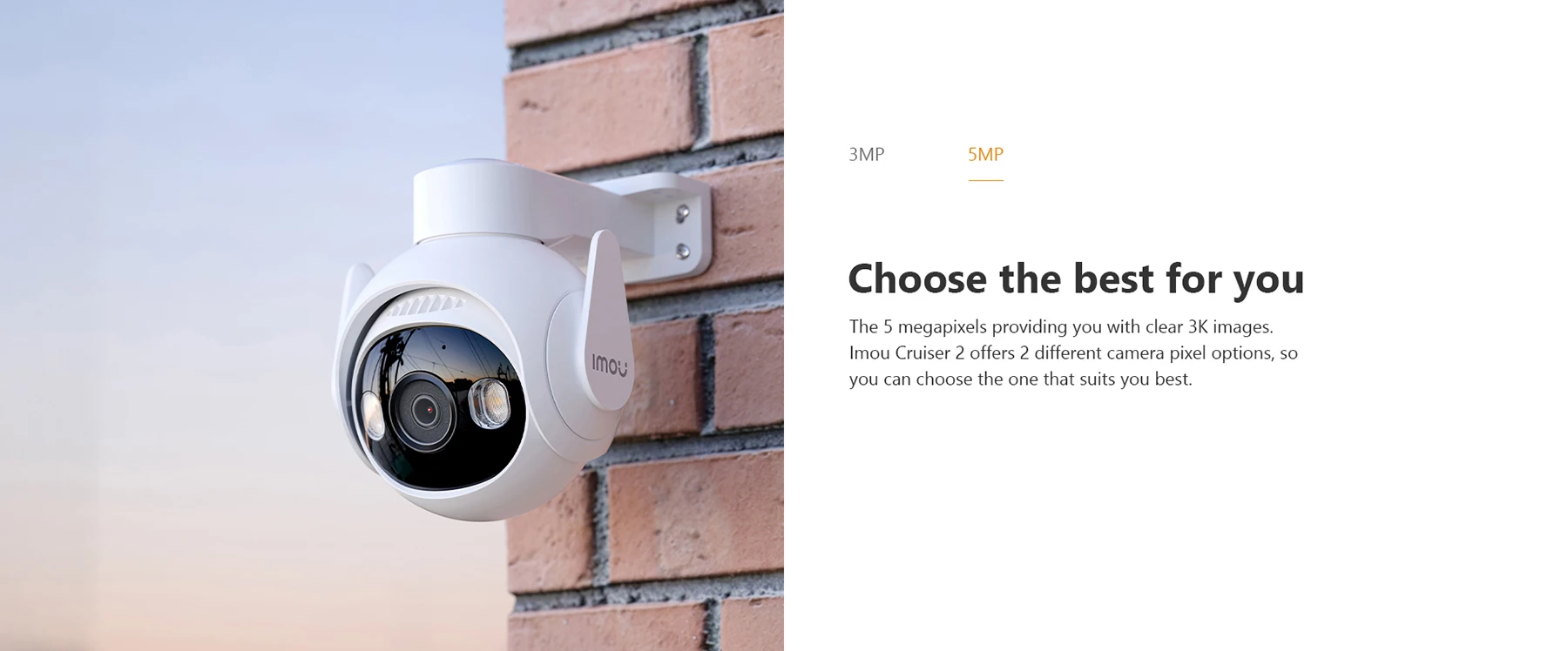 The 5 megapixels providing you with clear 3K images. Imou Cruiser 2 offers 2 different camera pixel options, so you can choose the one that suits you best.