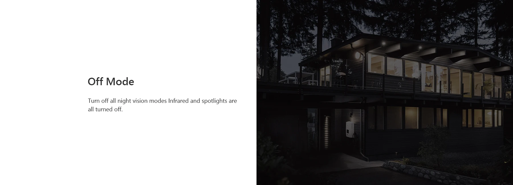 Turn off all night vision modes Infrared and spotlights are all turned off.
