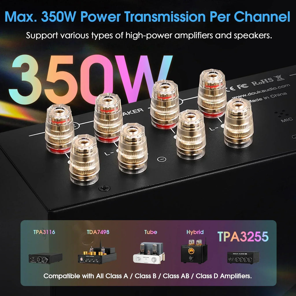 • Max. 350W Power Transmission and Super Compatibility: With the growing popularity of high-power amplifiers, the power requirements for switchers have also increased. With a maximum pass-through of 350W, the VU3Pro supports various types of high-power digital and tube amplifiers (BTL, Class A, Class B, Class AB, Class D, etc.), including 300W TPA3255 amps and floorstanding speakers.