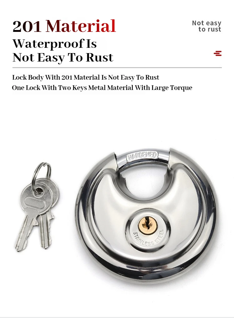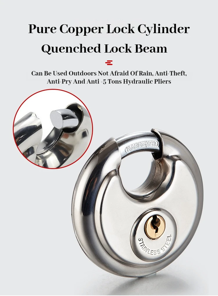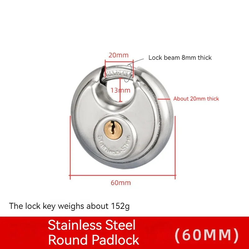 1/2/3PCS 60mm Waterproof Stainless Steel Disc Lock With Key With 3/8-Inch Shackle Outdoor Padlock For Storage Unit