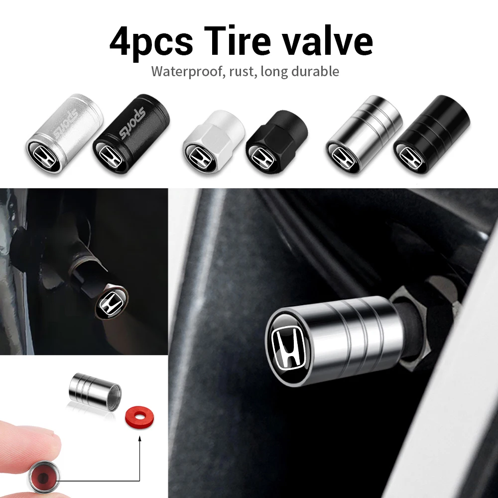 4PCS Car Badge Wheel Tires Valve Caps Metal Tyre Dust Cover For Honda CITY CIVIC Mugen -V CR-Z Type R Modulo Vezel Si RR Insight
