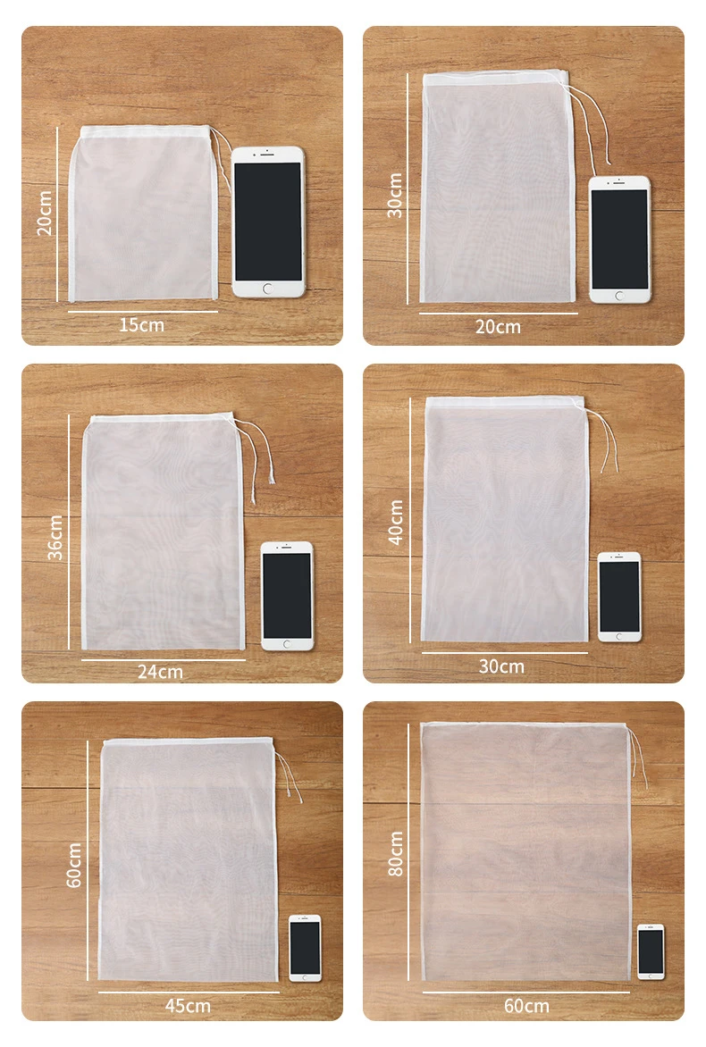 Soy Milk Filter Bags Reusable 100Mesh Fine Filter Bag Juice Coffee Soy Milk Drawstring Filter Bags Home Kitchen Food Strainers