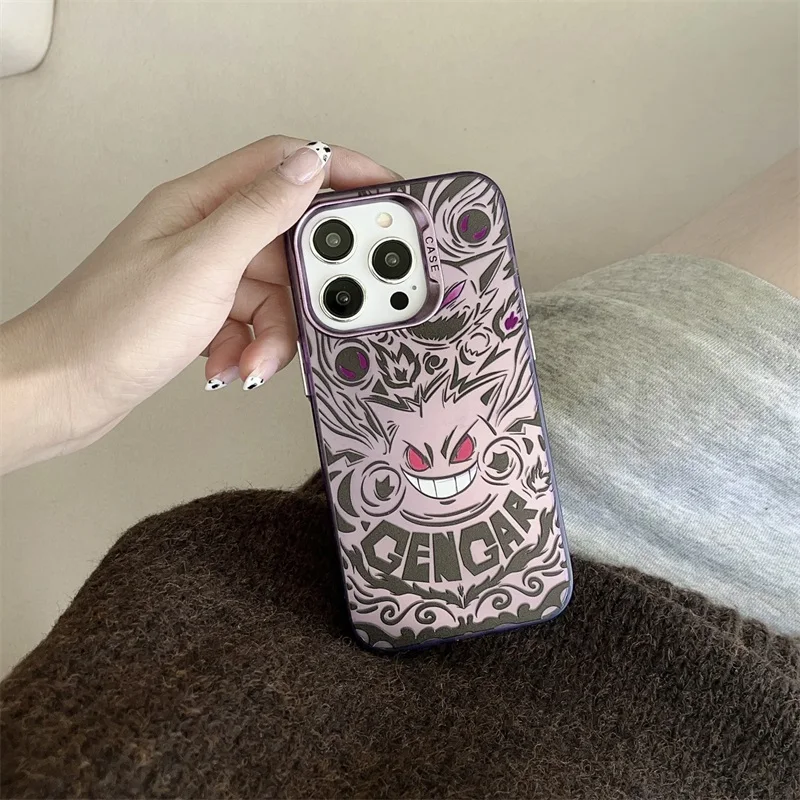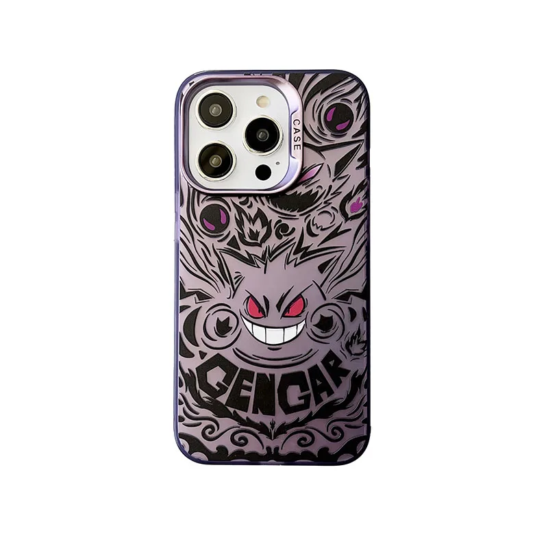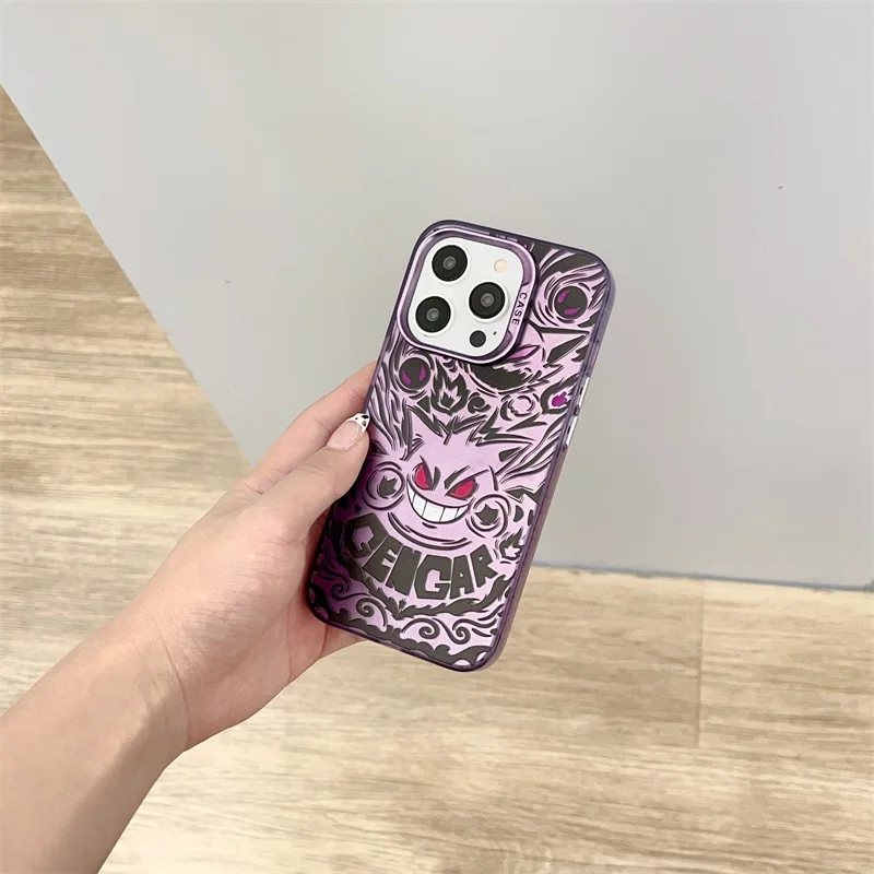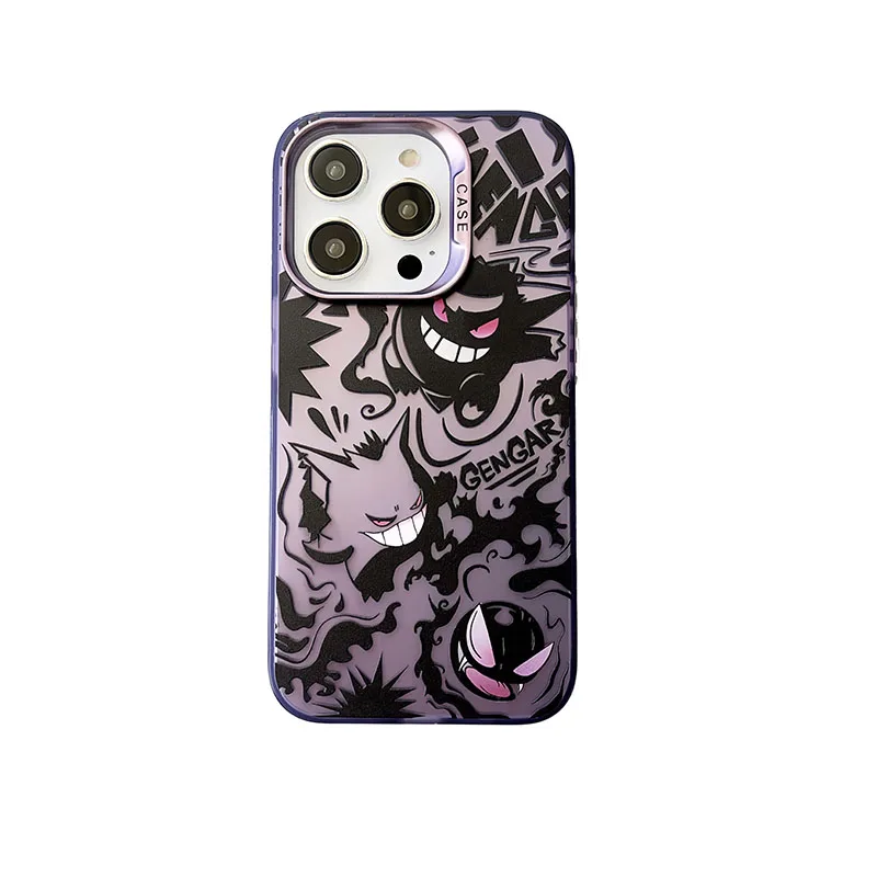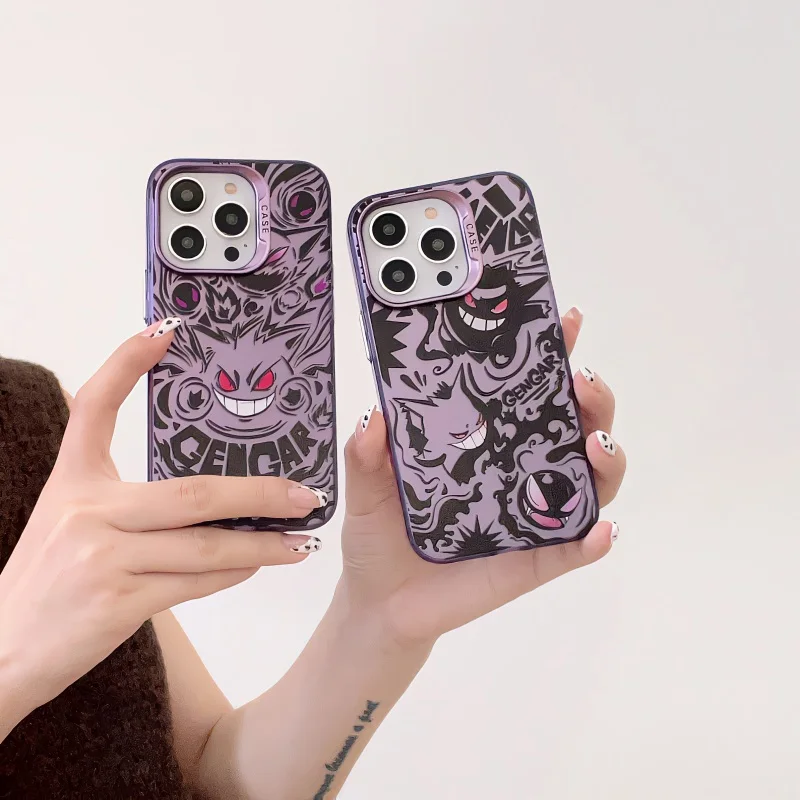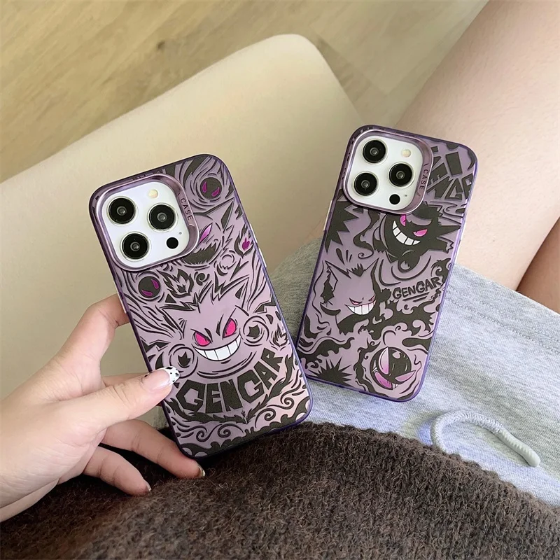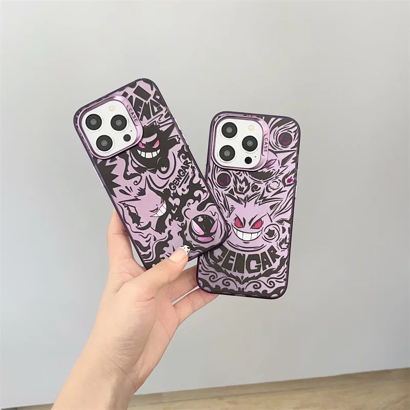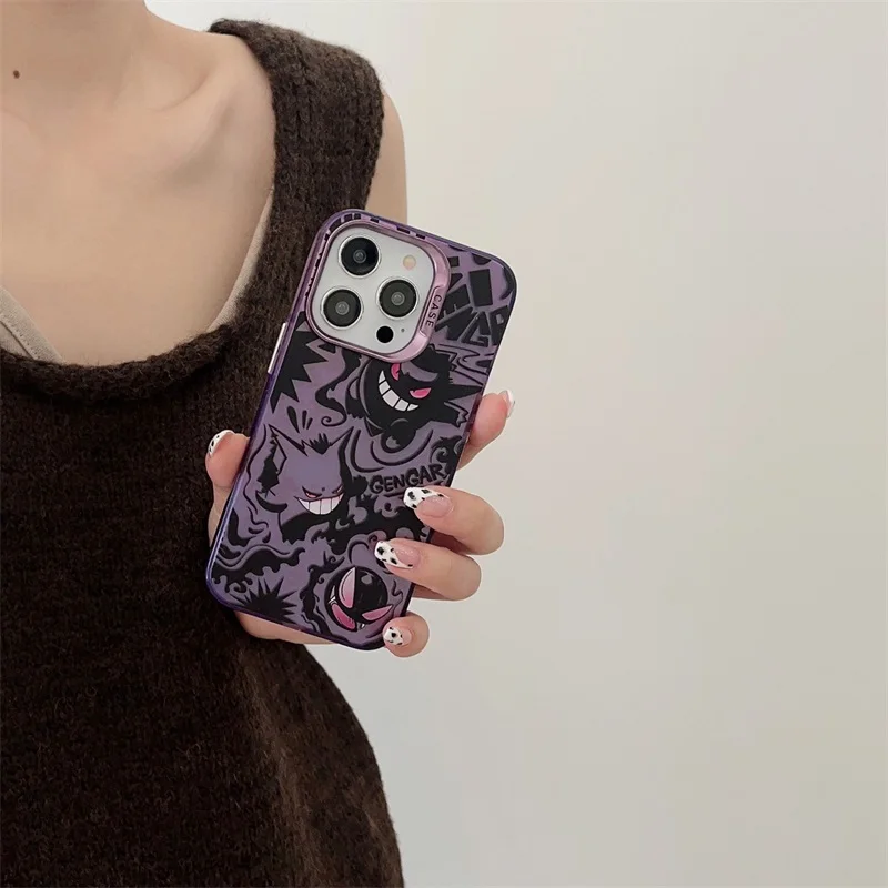 Cute Anieme Pokemon G-Gengar Phone Case for iPhone 15 14 13 12 11 Pro Max Color Sliver Shockproof Protective Phone Back Cover