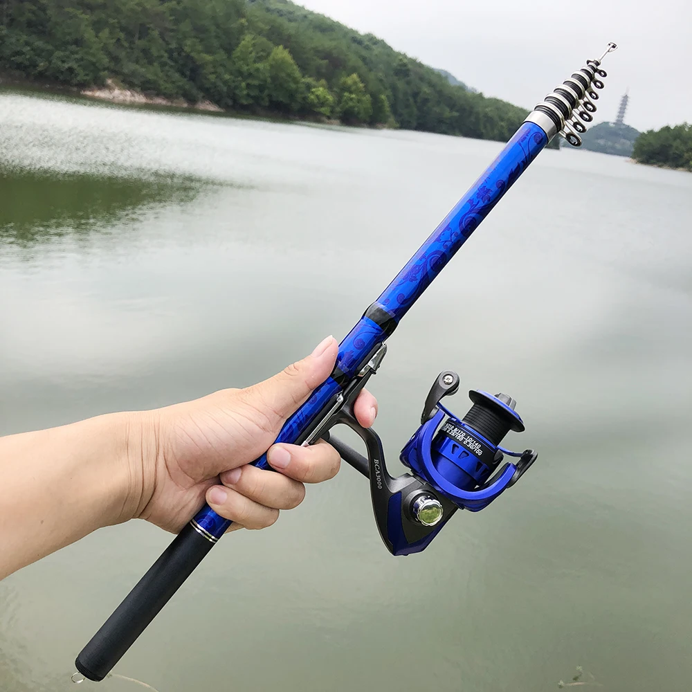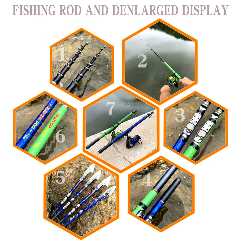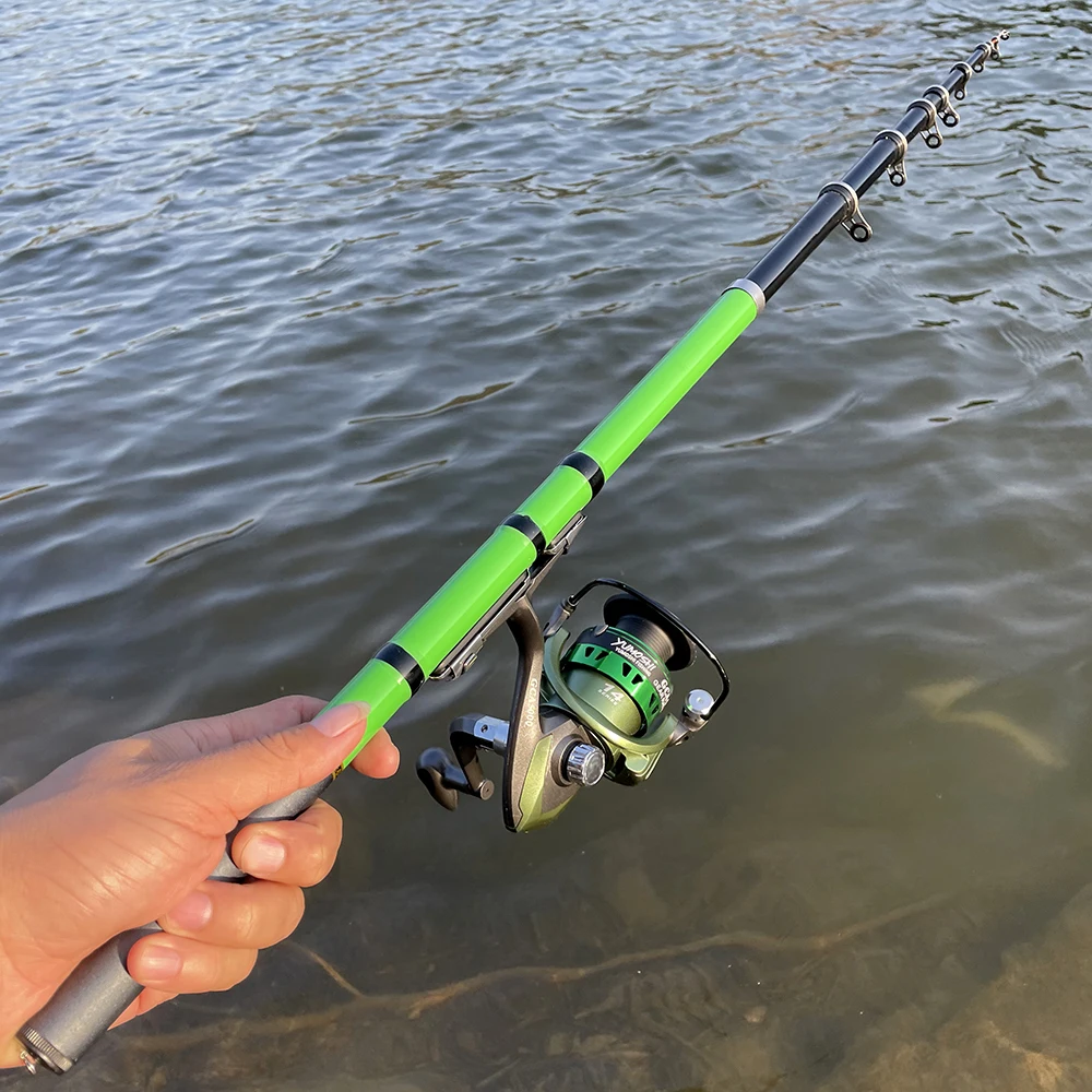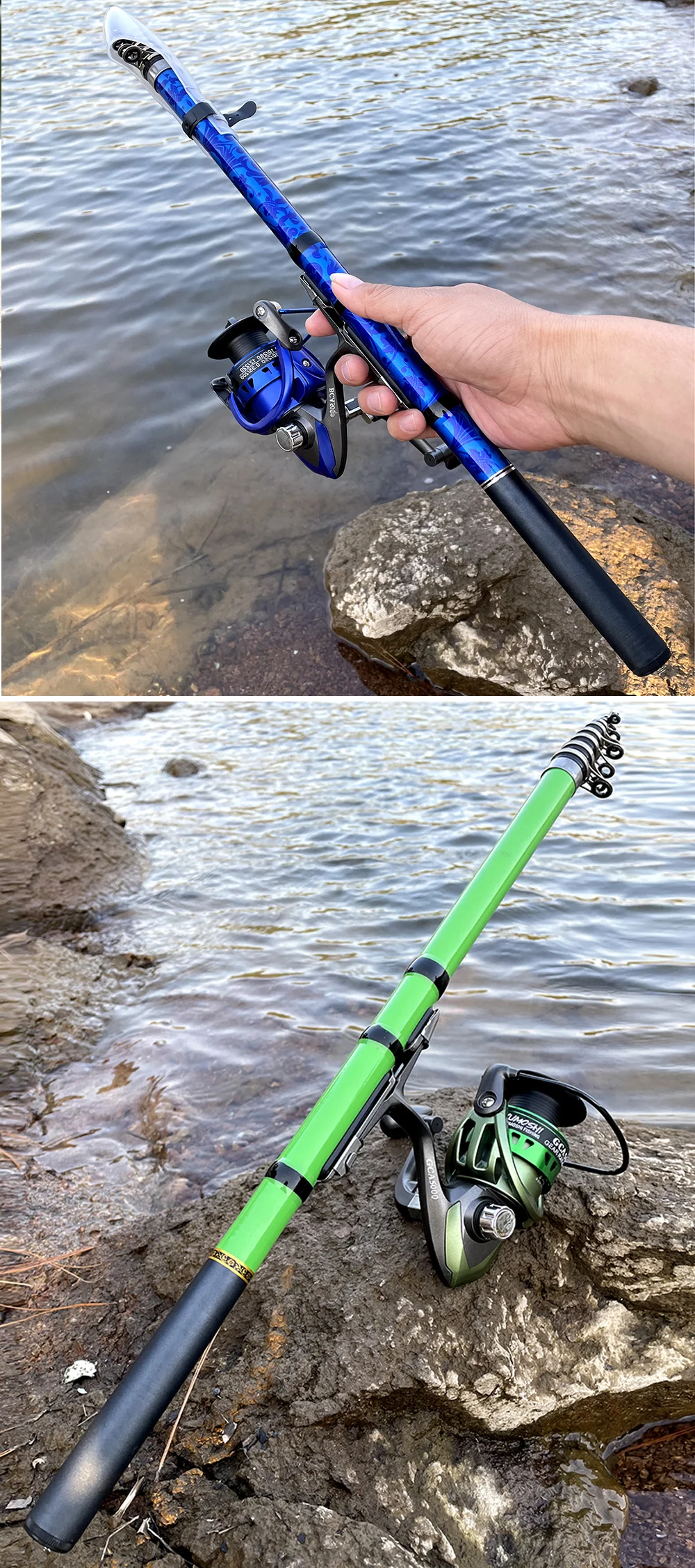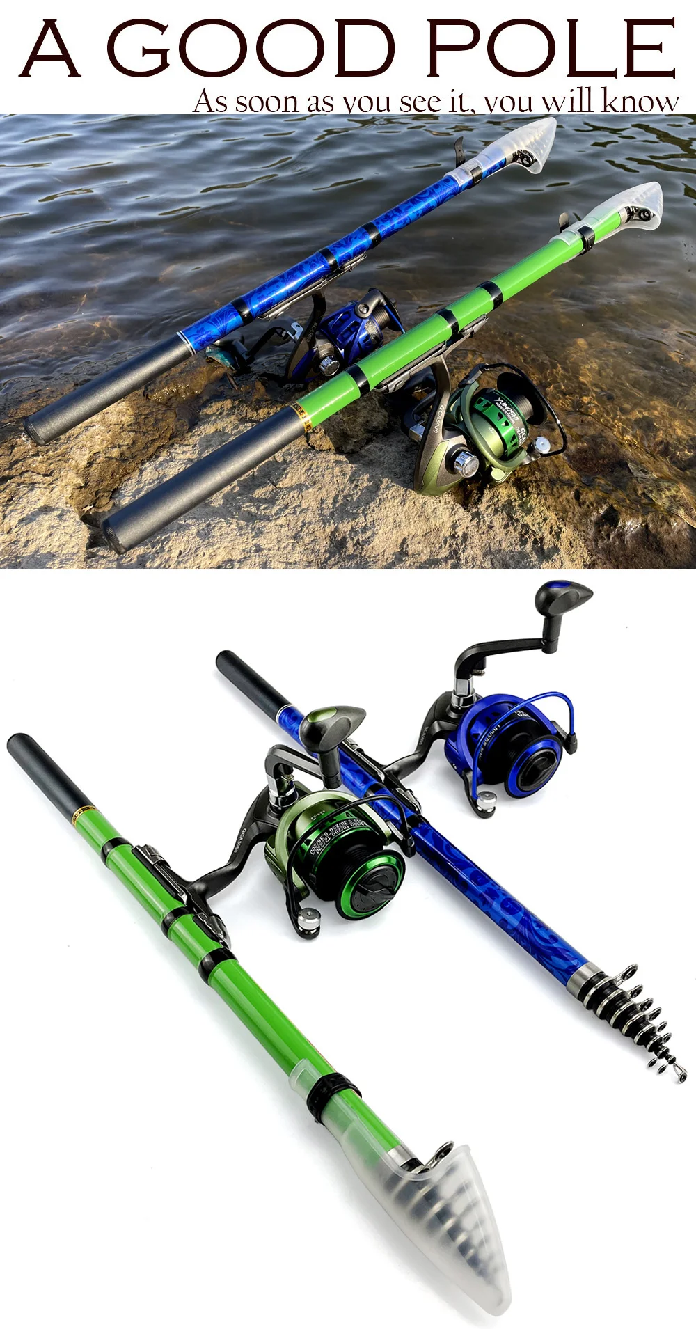 Fishing Rod and Reel Set Carbon Telescopic Fishing Rod Pole with 5.5:1 Metal Spool Spinning Reel Freshwater Kits