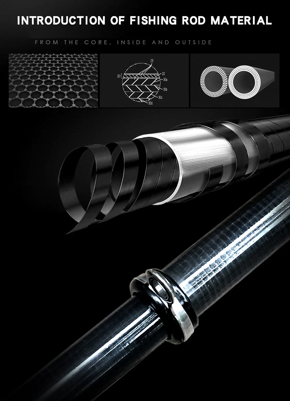 1.This fishing rod is made from carbon fiber, strong and durable.