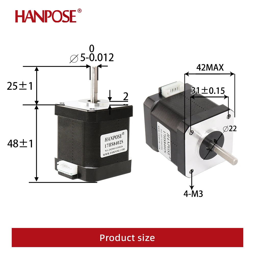 HANPOSE Nema17 stepper motor, torque 78 oz-in (52 N-cm), current 1.8 A. Models 17HS8401 17HS 2408 17HS3401S 17HS4401S 17HS6401S