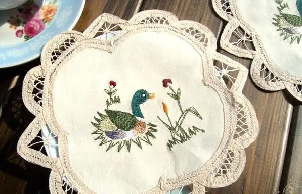 NEW cotton Lace Embroidery table place mat pad Cloth placemat cup Easter coaster dining doily Table decoration and accessories
