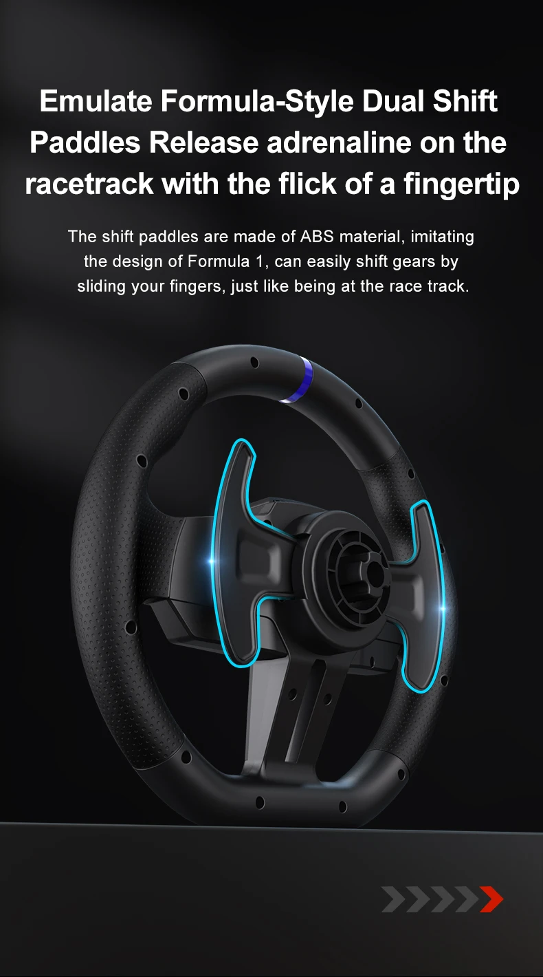 • ✅【Strong Sensitivity Racing Wheel】Built-in dual vibration motor racing wheel. With multi-level vibration function, it can automatically adjust the vibration output according to the changes of the game scene, there are 3 adjustable sensitivity levels (low/medium/high, different sensitivity is suitable for different platforms, please refer to the manual for details), buttons on the steering wheel You can program the settings according to your own preferences.