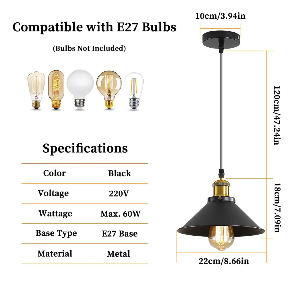 [Standard E27 Socket] - black bedroom kitchen ceiling light for kitchen island uses standard E27 sockets. Fits E27 bulbs under 60W including LED, incandescent, CFL and halogen. PS: It is compatible with dimmable bulbs and switches for a dimmable atmosphere. (Bulb and dimmer excluded)