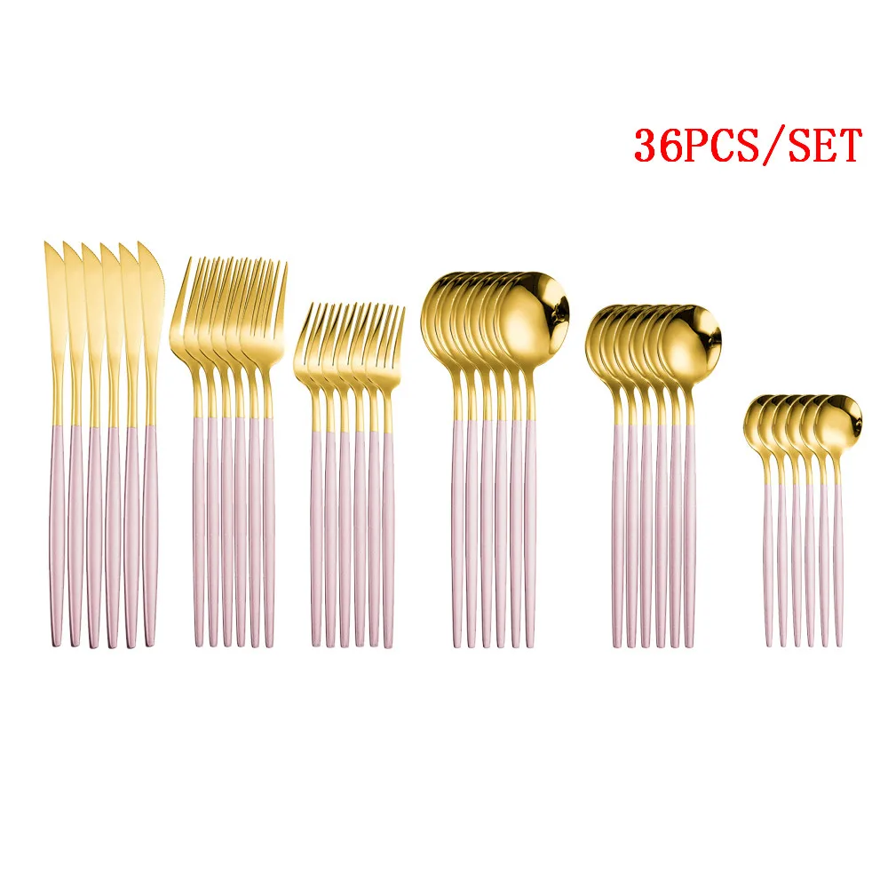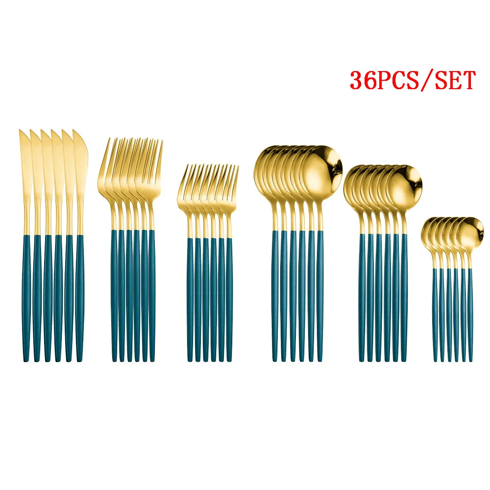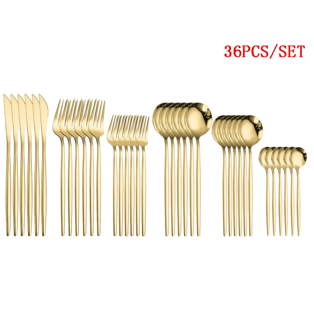 Tableware Gold Cutlery Set 36 Piece Fork Spoon Flatware Cutelry Set Stainless Steel Gold Dinner Dessert Fork Knife Tea Spoon Set