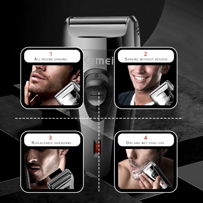 Kemei Electric Shaver Men's Razor Original Beard Trimmer for Men Cordless Trimmer Hair Clipper USB Fast Charging Display Light