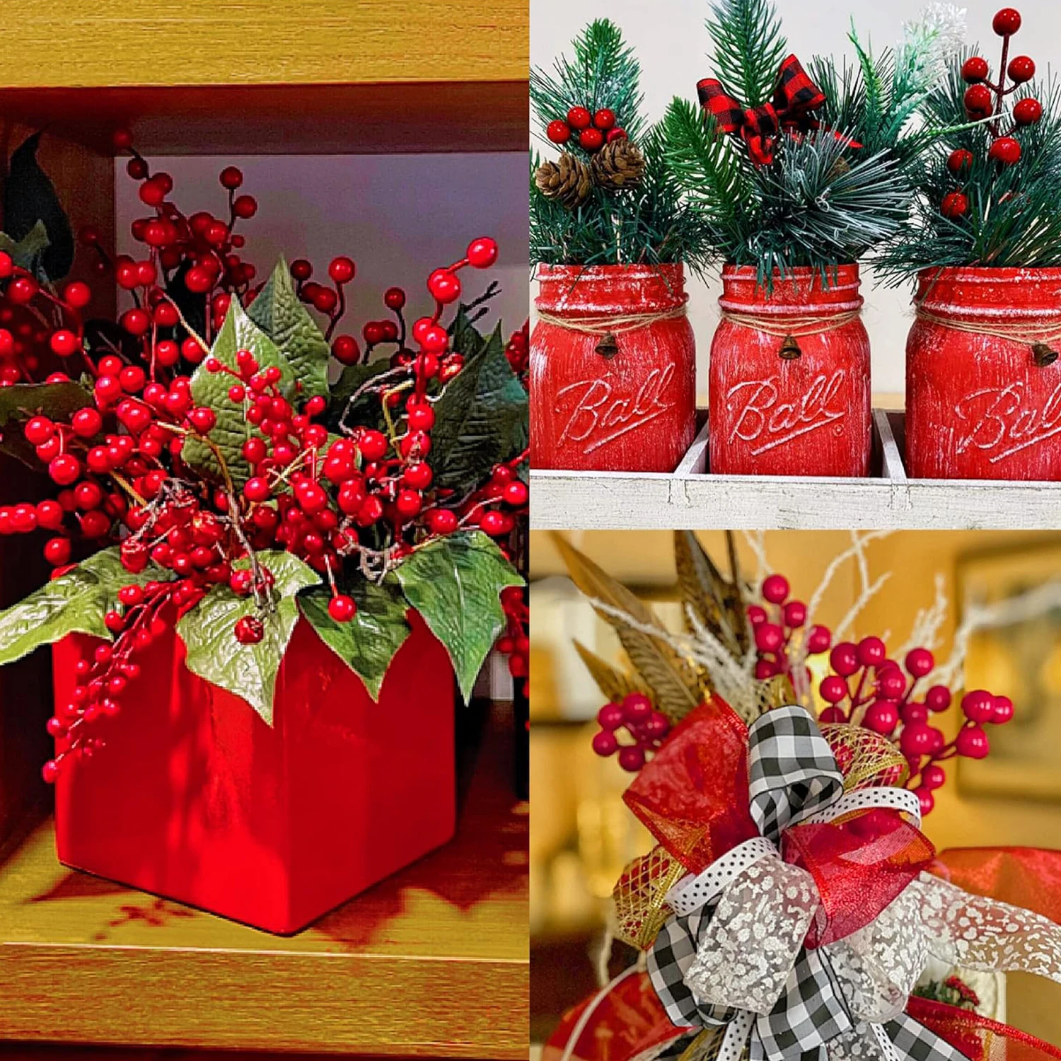 Artificial plant Holly Little Red Fruit New Year Christmas tree Home festival livingroom Wedding Decor diy gift Placement Prop