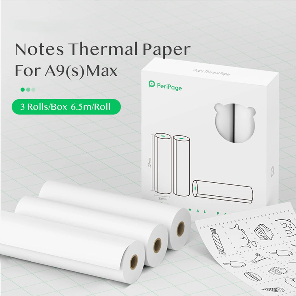 3 rolls white notes thermal paper, 107*30mm paper roll size, the printed content can be stored for 10 years.
