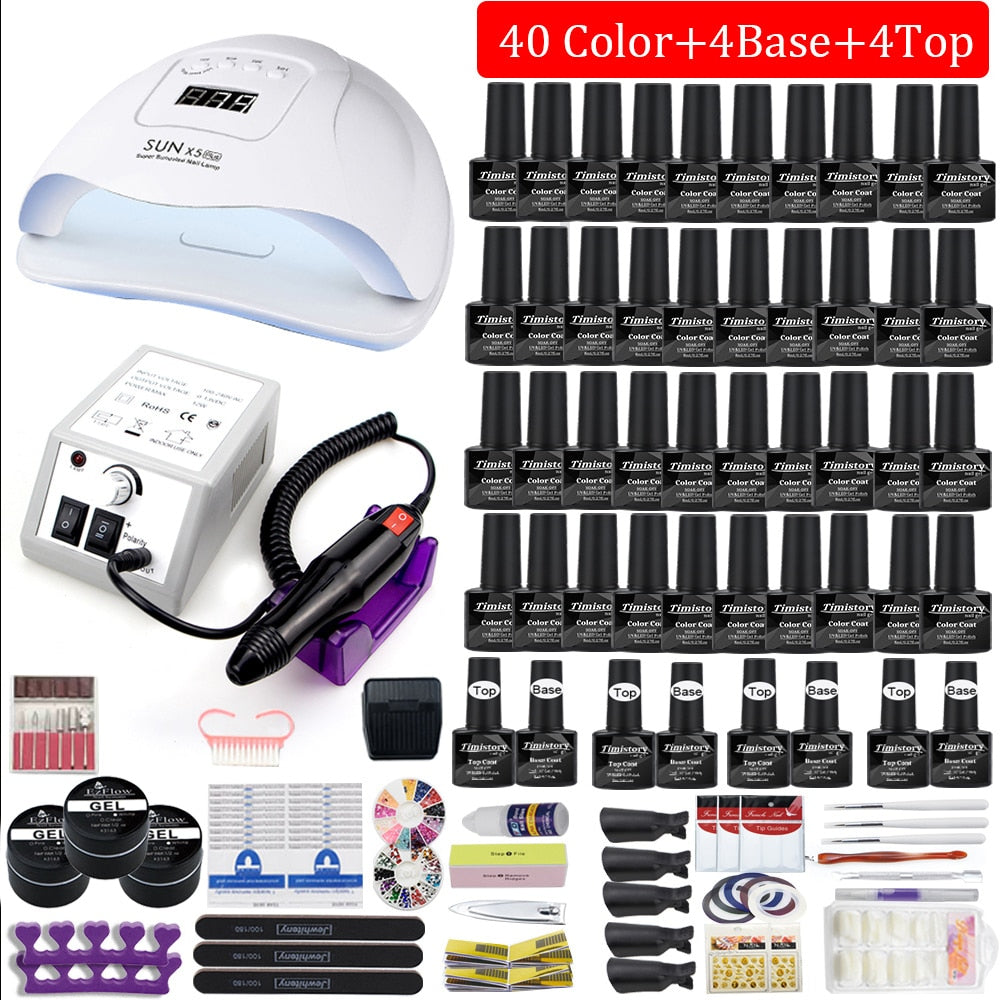 40 Colors Nail Polish super Manicure Set 120/80/54W LED Nail Lamp Nail Set With All Tools Needed For Manicure Electric Nail File