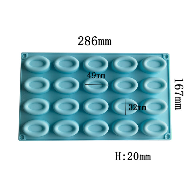 New 20-cavity Silicone Oval Doughnut Mold Small Cake Chocolate Pancake Moulds for Baking Mini Dessert Kitchen DIY Handmade Tools