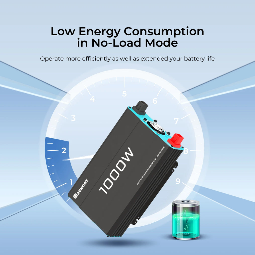 Renogy Pure Sine Wave Inverter 12V DC to 120V AC Converter for Home, RV, Truck, Off-Grid Solar Power Inverter 12V to 110V