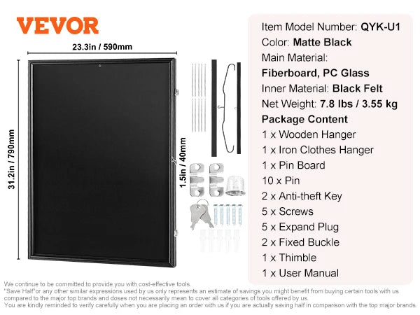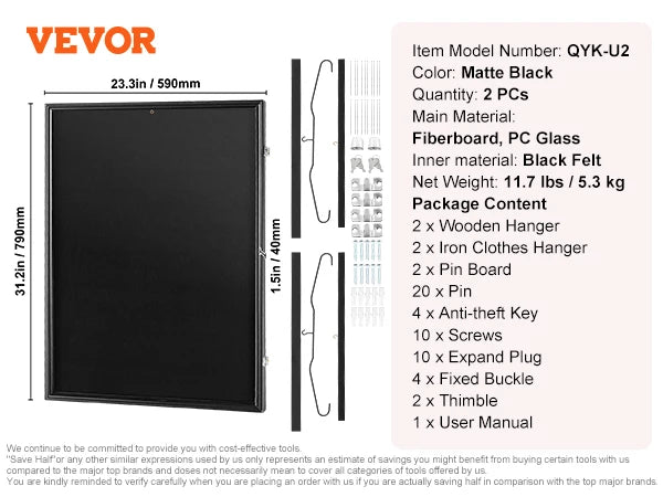 Versatile Display Alternatives: We have you covered with a variety of accessories to display your jerseys! In addition to essential installation components, we supply a wooden hanger, an iron hanger, and 10 fixed pins. The wooden hanger is perfect for sleeveless jerseys such as basketball jerseys, while the iron hanger is suitable for smaller soccer jersey shirts. The fixed pins are best for long-sleeved jerseys like soccer and hockey jerseys, ensuring a wrinkle-free display.