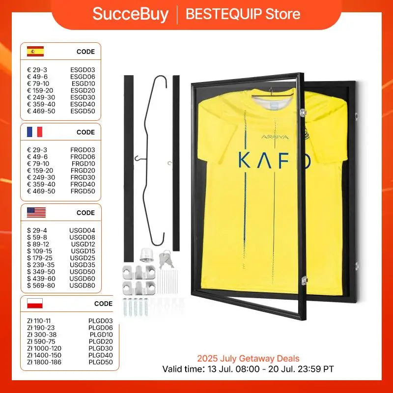 Enjoy a Transparent and Vivid Display: Our jersey frame display case is fitted with PC glass panels that have exceptional transparency (over 92%) and UV protection (98% UV resistance), providing a high-definition viewing experience. Your jerseys will remain vivid and resist fading or discoloration, even under prolonged light exposure. Invest in quality and protection for your memorabilia today!