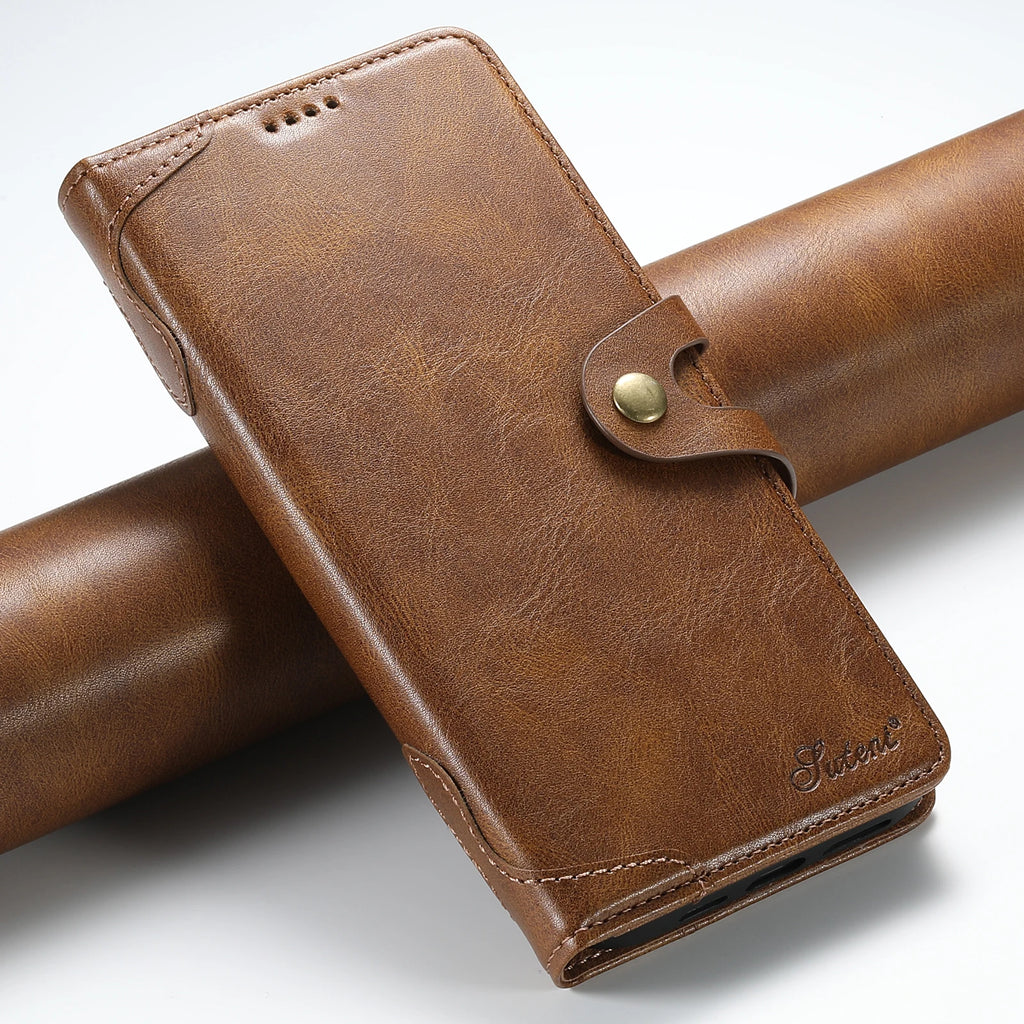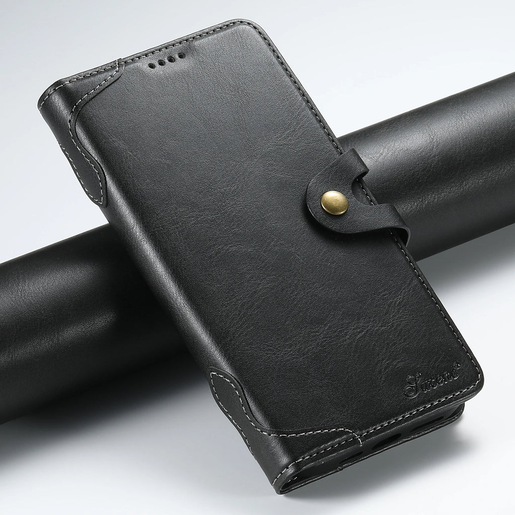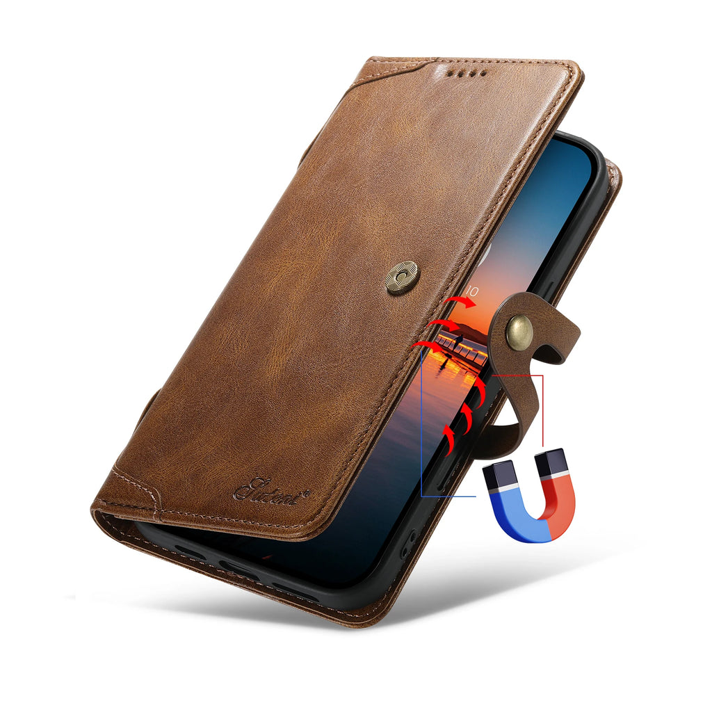 SUTENI PU Leather Card Holder Phone Case Stand Wallet Magnetic Button Flip Cover For iPhone 16 Pro Max 15 Plus 14 13 12 Mini 11
