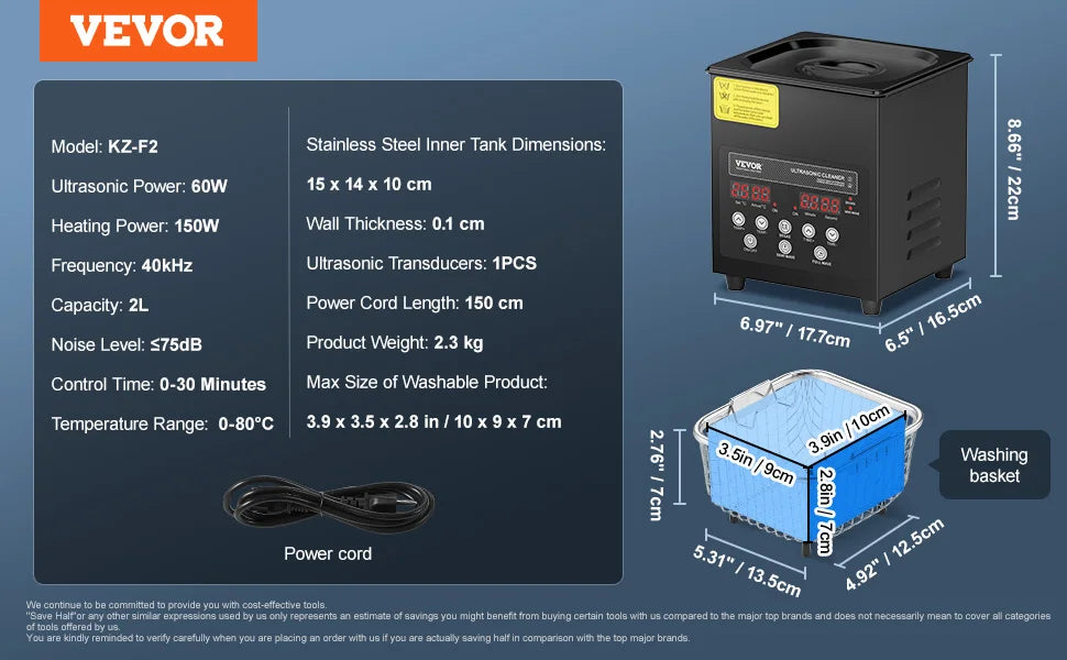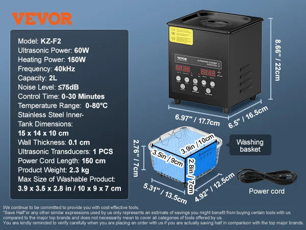 Versatile Use: Ideal for cleaning jewelry, automotive parts, eyewear, and more. Whether you're a professional or an everyday user, the VEVOR Ultrasonic Cleaner is a reliable tool for all your cleaning needs.