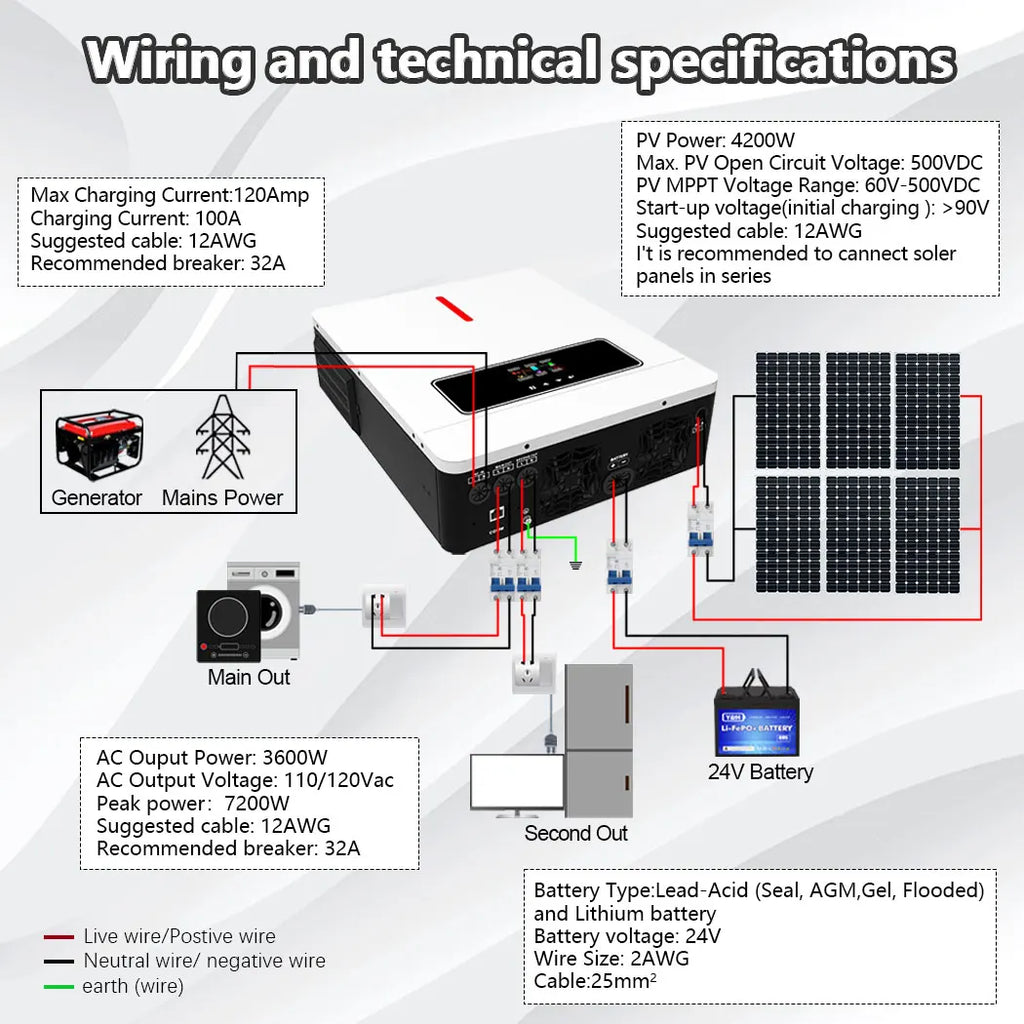 3600W On Grid/Off-Grid Solar Inverter Features: