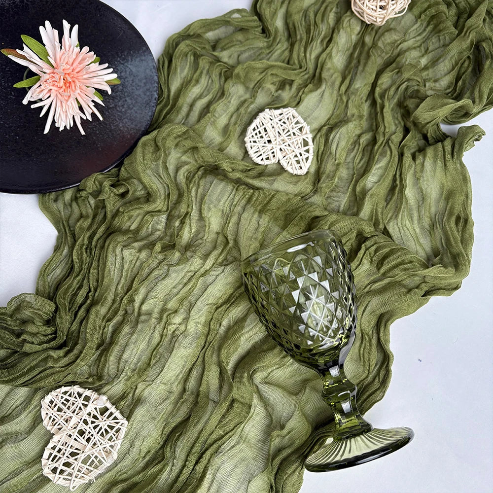 STYLE - A rustic-elegant look with this wide hand-dyed color gauze table runner. It is unique and elegant for your wedding table, shower, party, holiday, easter basket, or any occasion.