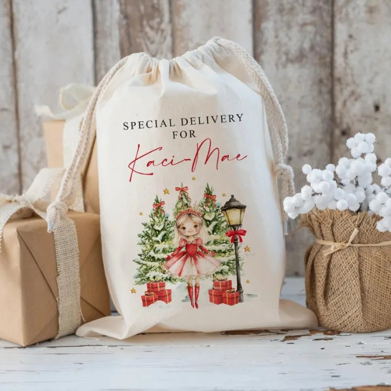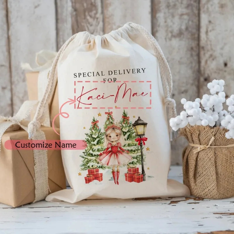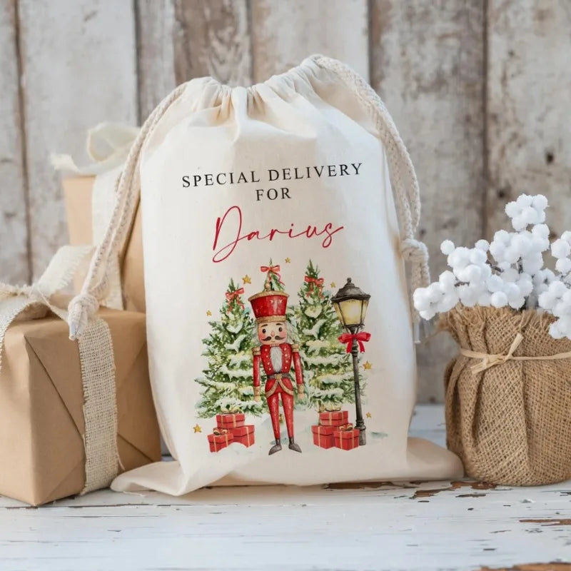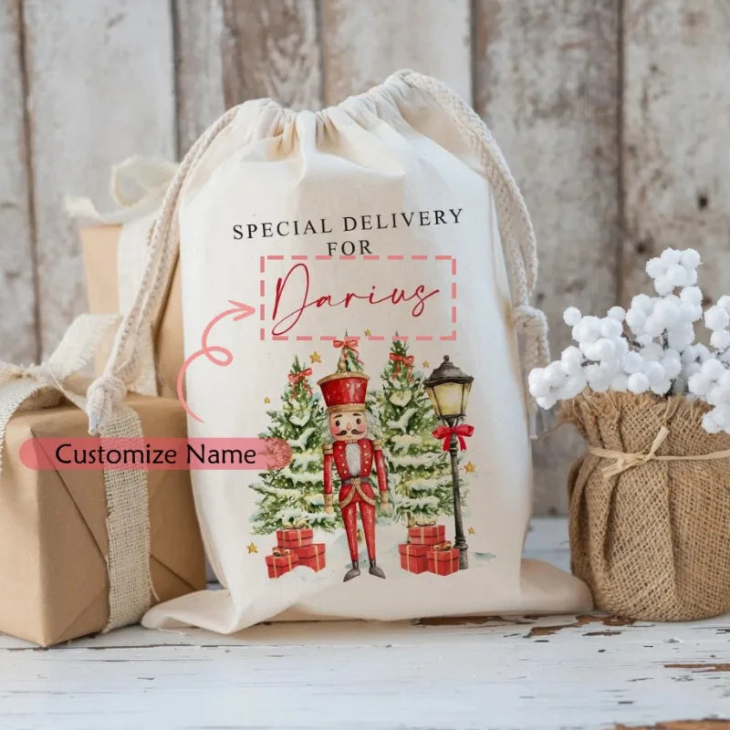 Personalised Custom Christmas Sack Boy Girl Xmas Toy Santa Stocking Nutcracker Soldier Ballet Dancer Holiday Present Gift Bag