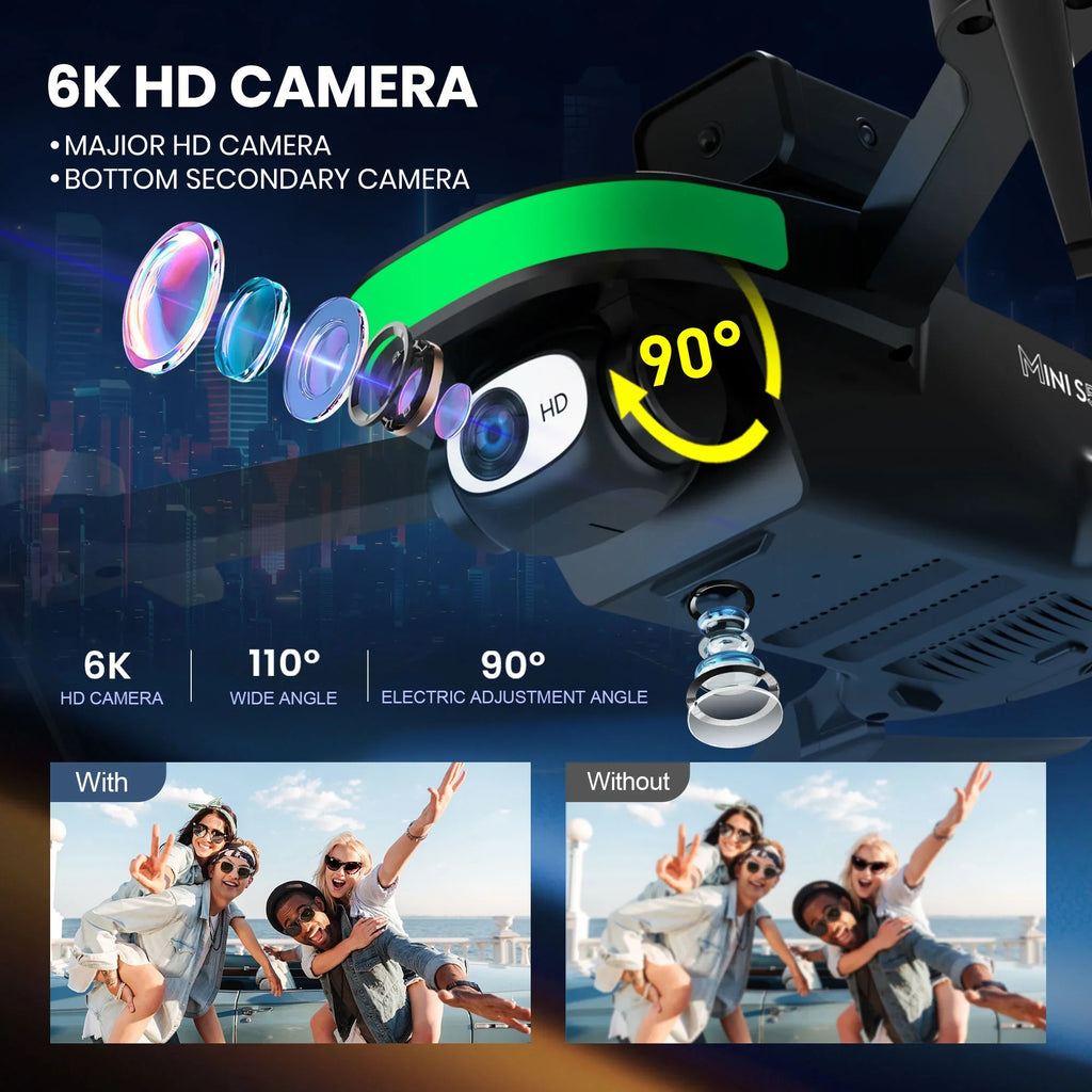 6K UHD CAMERA:Elevate your flying experience to new heights with the S5S Drone's 6K UHD camera! The camera's 90° adjustable angle and 110° wide-angle view provide you with a broader perspective, ensuring you capture breathtaking shots of your life's most unforgettable moments. With the S5S Drone's real-time transmission technology, you can witness the beauty of the world from above in real-time. Simply connect to the App and enjoy live images of mesmerizing scenery as you soar through the skies. Get ready for a truly immersive and captivating aerial adventure with the S5S Drone. It's time to seize the moment and embrace the thrill of flying like never before!