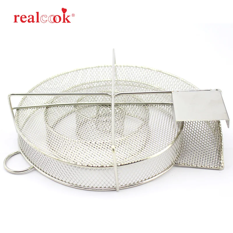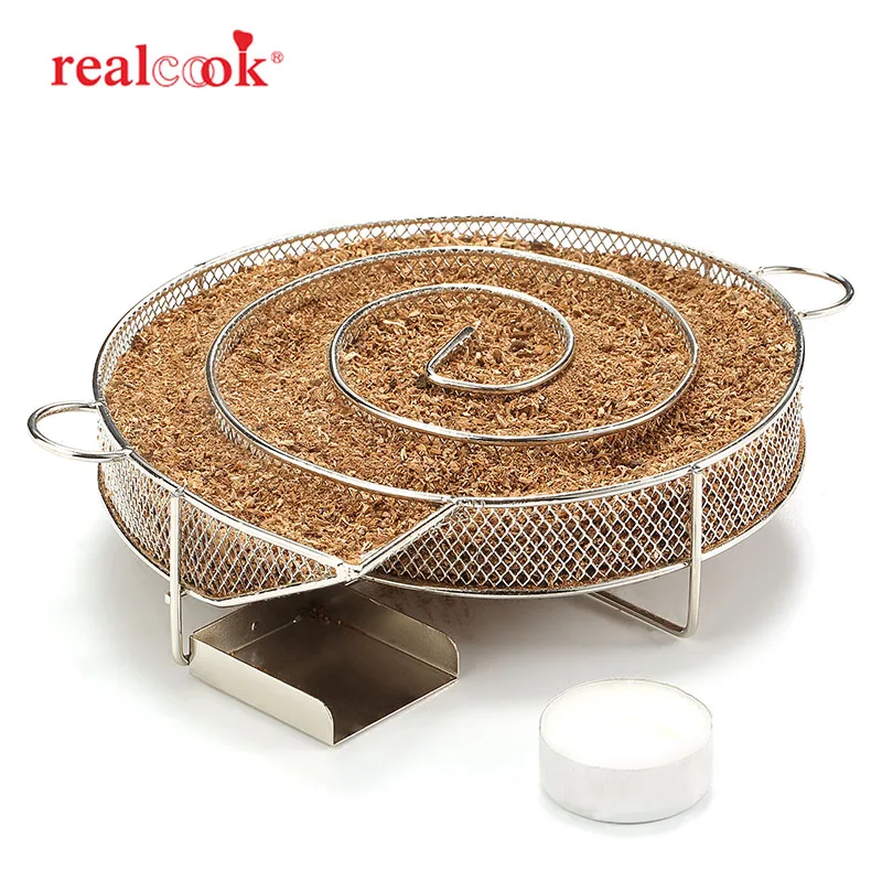 Realcook 13.78 inch Cold Smoke Generator Charcoal Barbecue Round Meshes Apple Wood Chips Smoker BBQ Grill Accessories For Salmon