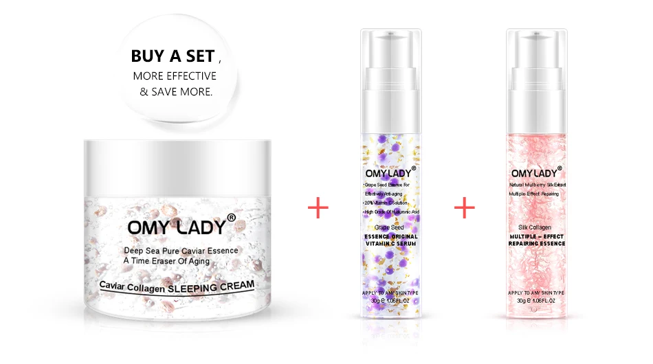 3PCS OMY LADY GrapeSeed Essence Original Vitamin C Serum Face Cream Liquid Essence Delay Aging Reduce Wrinkles Moisturizing Skin