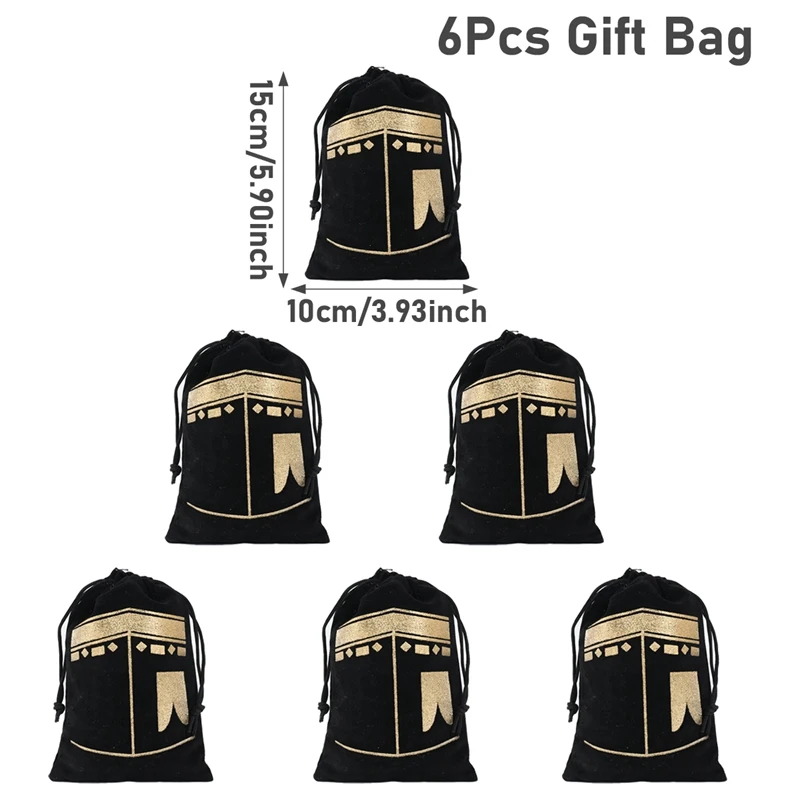 6pcs Eid Mubarak Bags Black Velvet Gift Kareem Ramadan Candy Bags Muslim Islamic Home Family Party Decorations Eid al-Fitr 2025