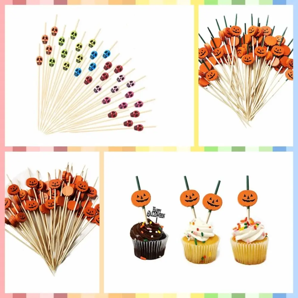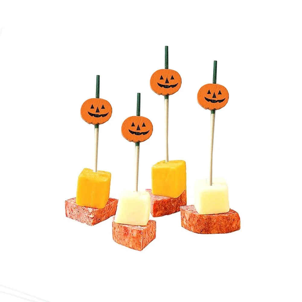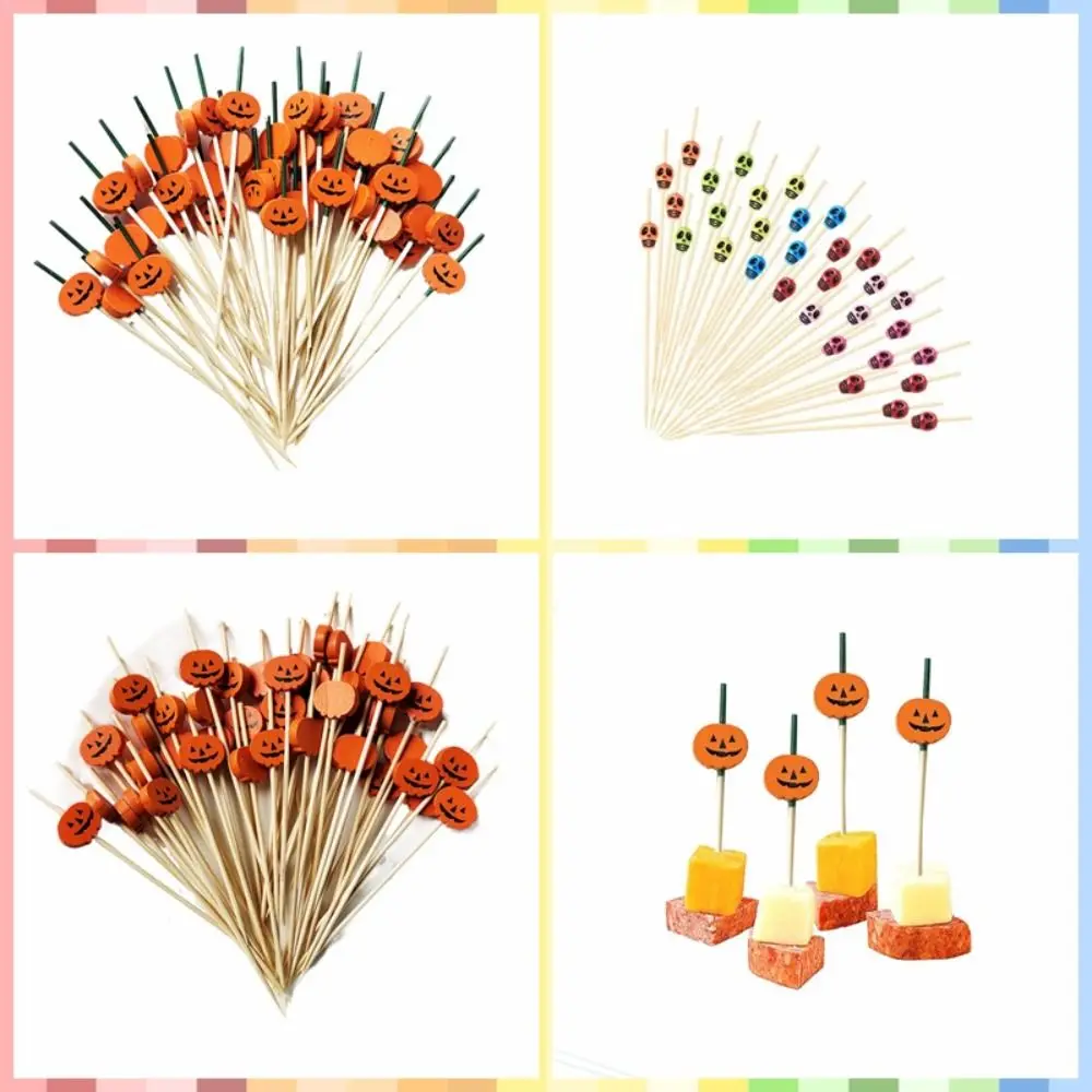 Multifunctional Hygienic Halloween Pumpkin Bamboo Skewers Natural Material Skull Bamboo Stick Smooth Surface Toothpick