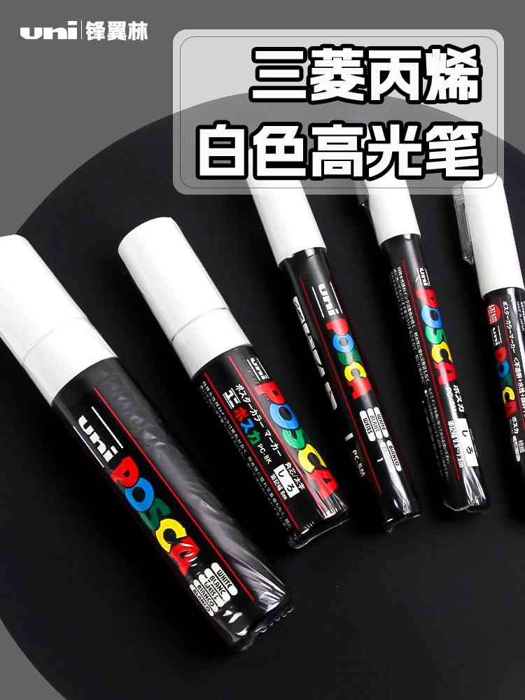1Pc Japan UNI POSCA Acrylic High Gloss Marker Pen Waterproof Quick Drying Black Gold Silver White Student Supplies