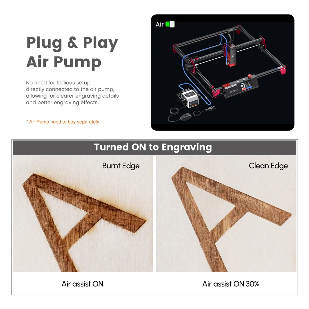 Ultrafine Laser Point & Powerful Laser Module - Comes with the latest FAC laser technology for compressed laser point, 0.08 x 0.08mm point size, super concentrated energy can make carving or cutting more solid. The output power of the laser module reaches 10W.